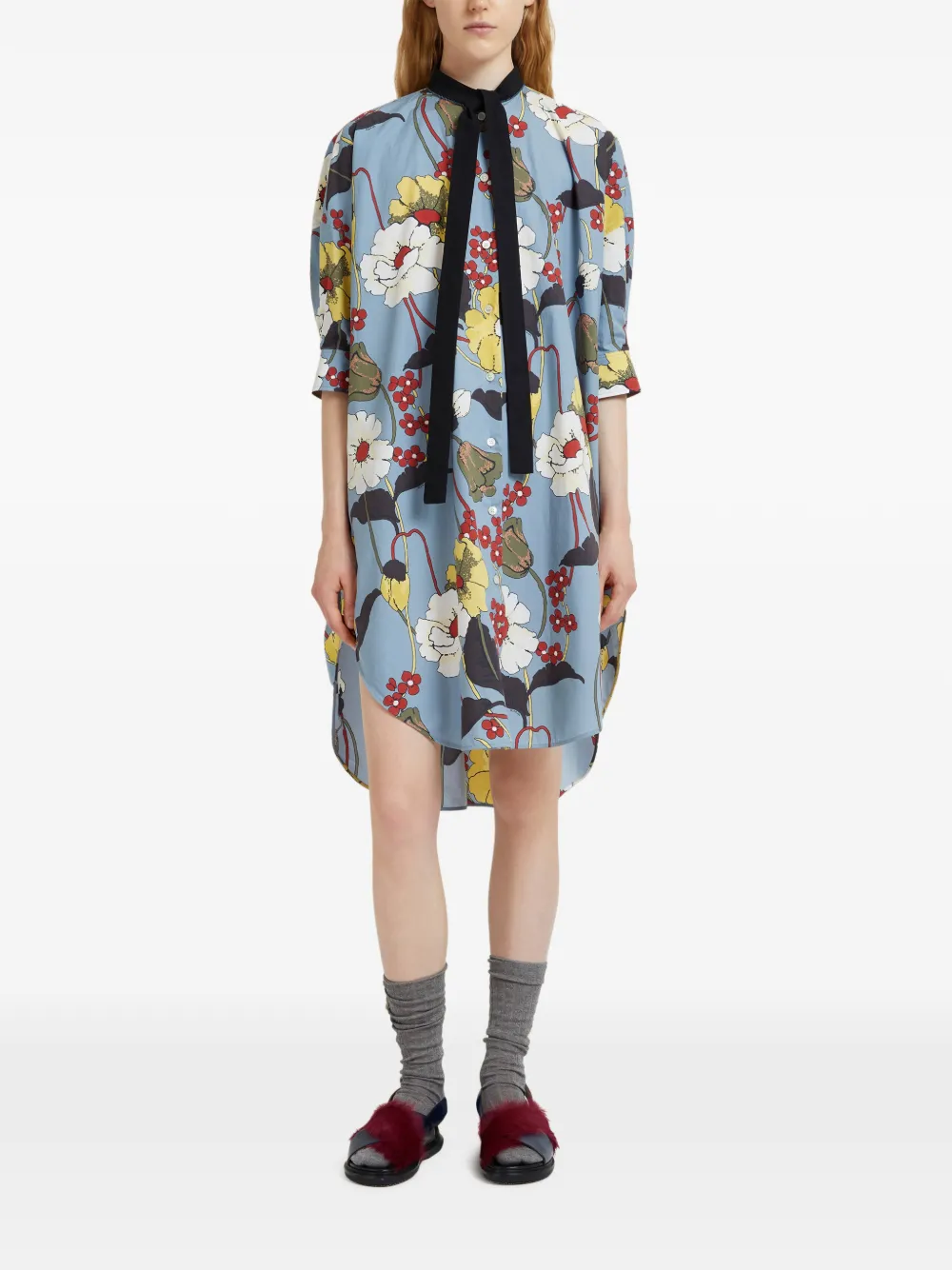 Платье с завязками и цветочным принтом Marni, синий