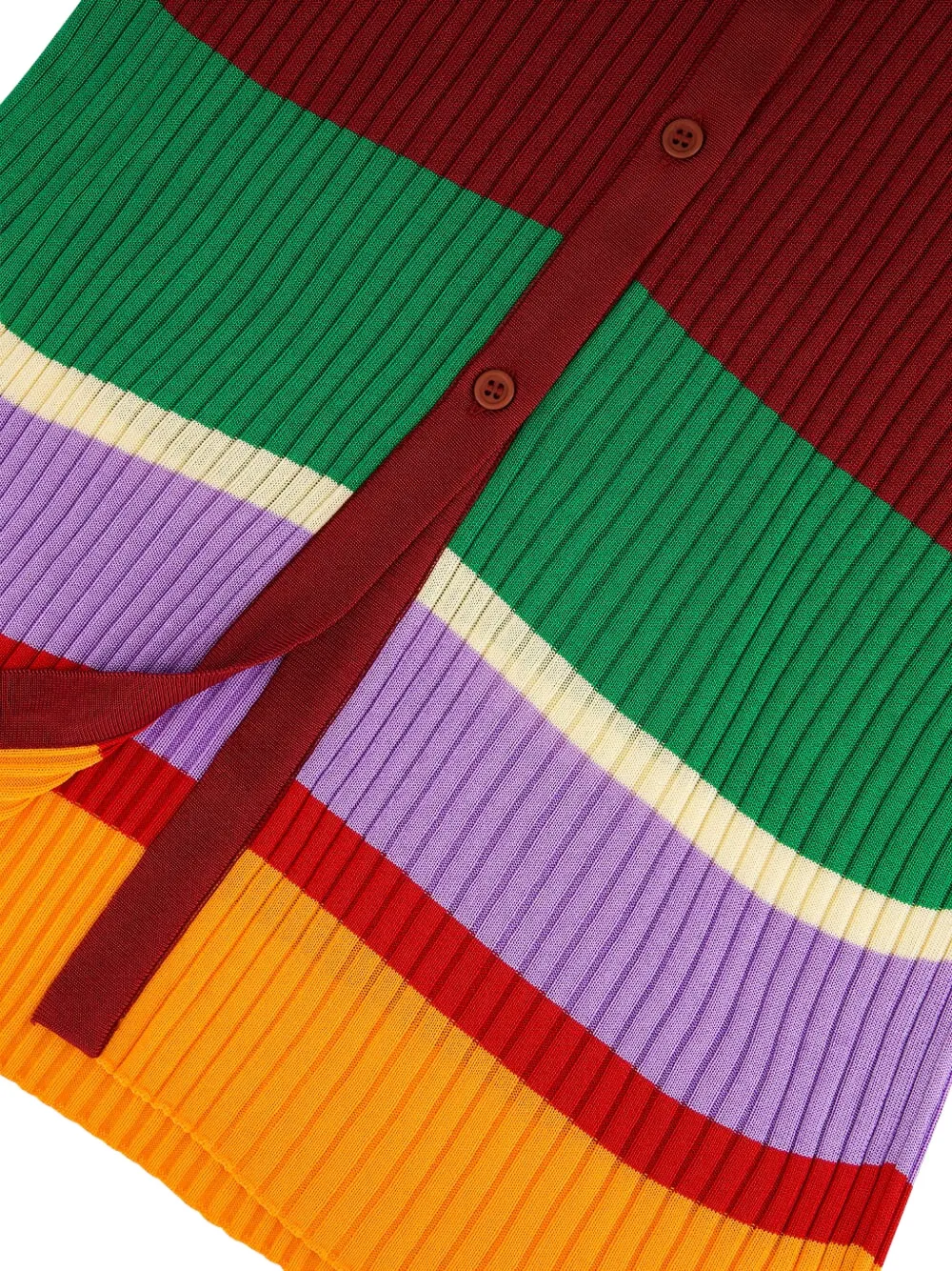 Красная вязаная фактура, застёжка на пуговицы, длинные рукава, полосатый край