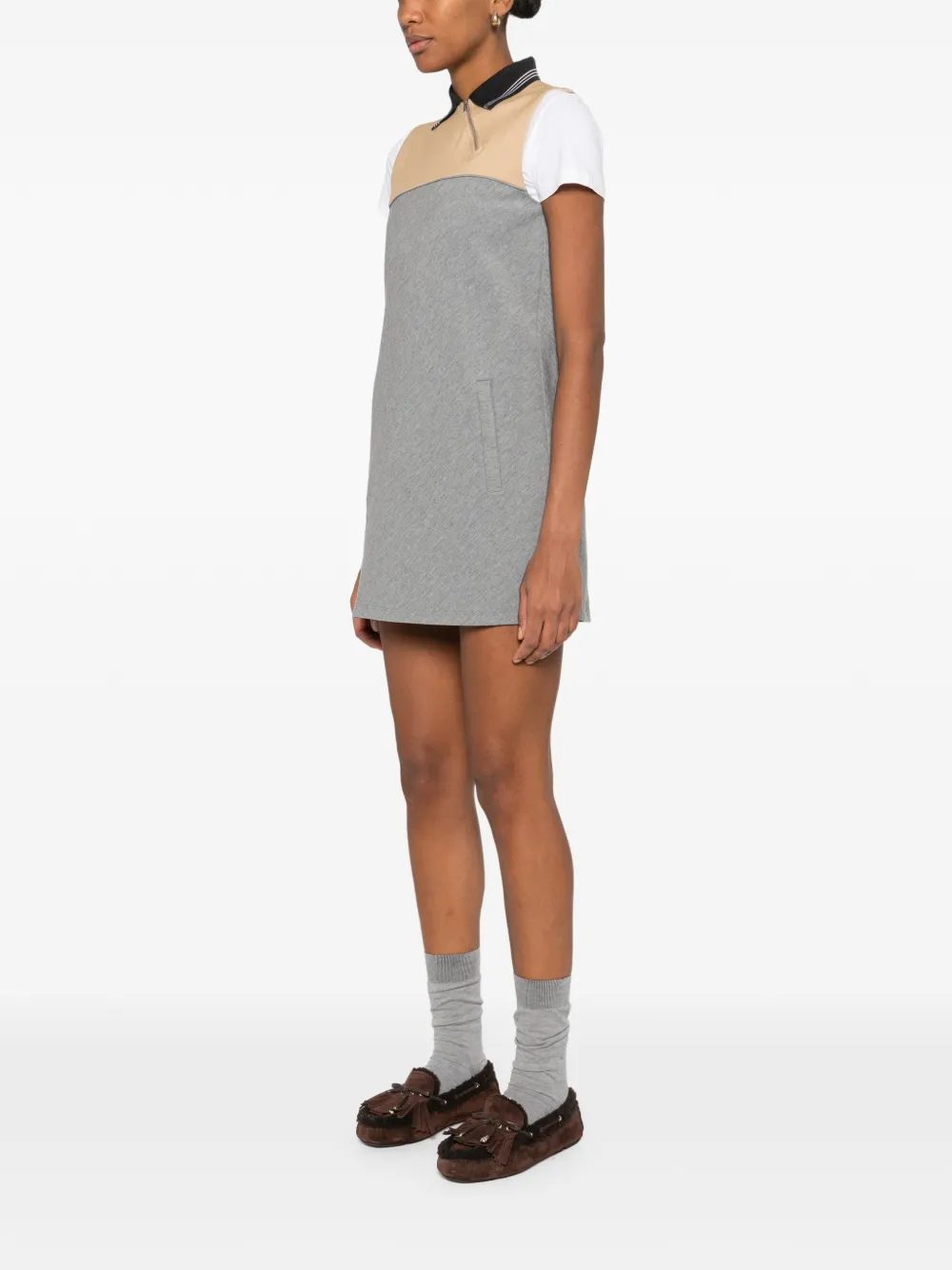 Мини-платье с полу-молнией и воротником-поло Miu Miu, серый