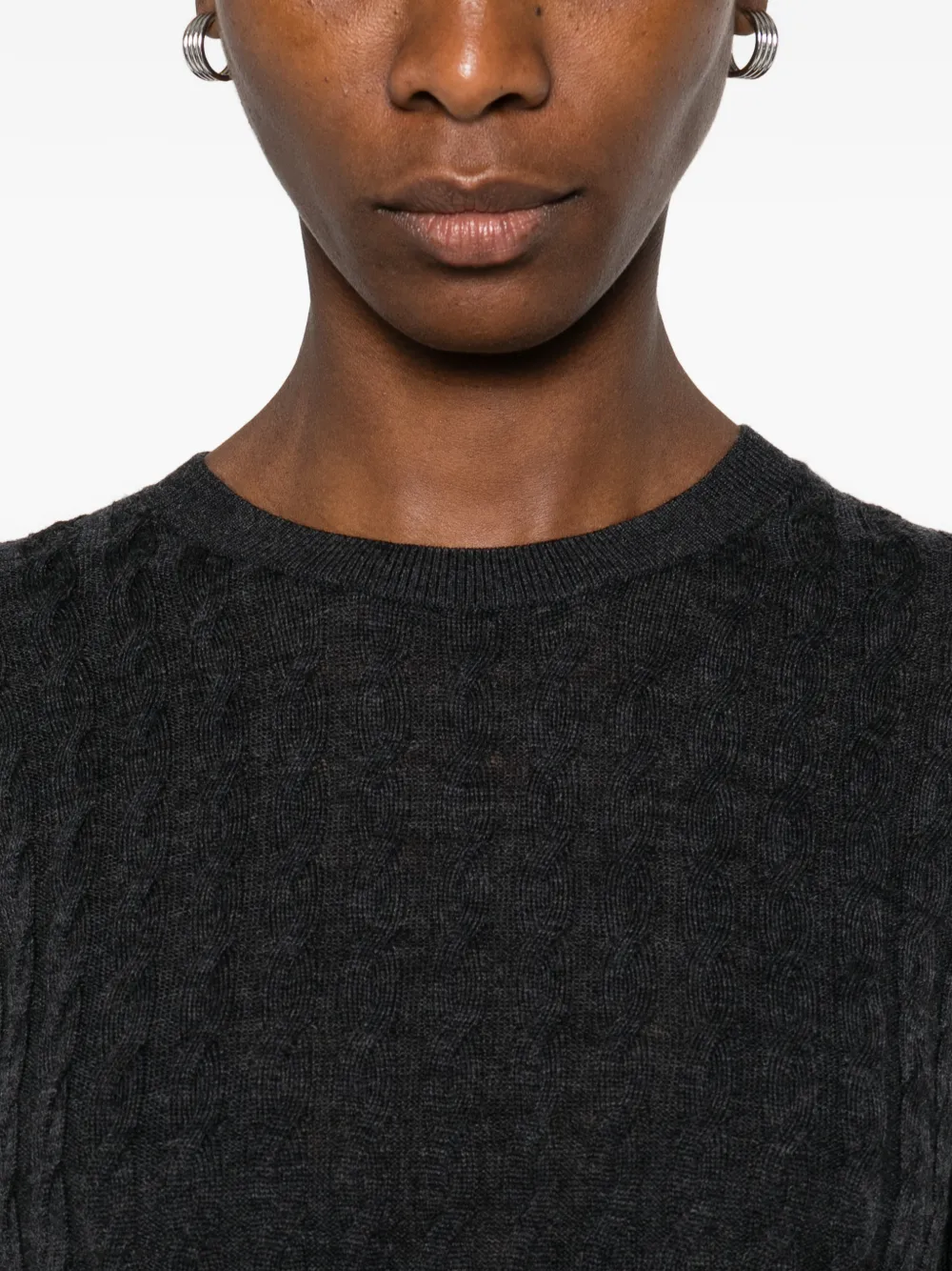 Длинные рукава, круглый вырез, угольного цвета, вязаный «косами»