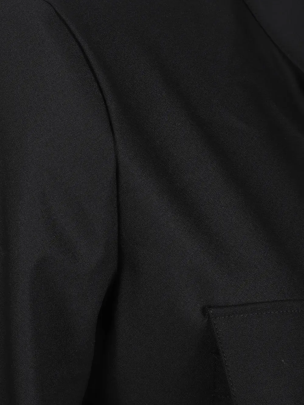 Черная шерстяная куртка на пуговицах, с передними карманами, длинными рукавами и высоким воротником