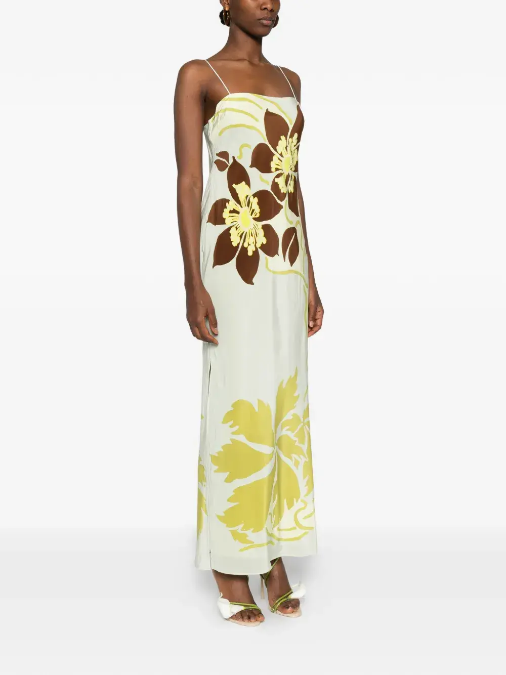Зелёный сарафан на тонких бретелях с цветочным принтом и цветочным мотивом