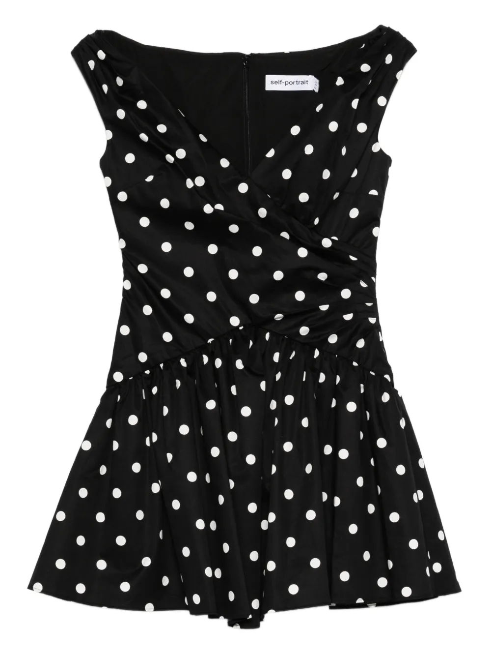 Мини-платье с V-образным вырезом и принтом в горох Self-Portrait, черный