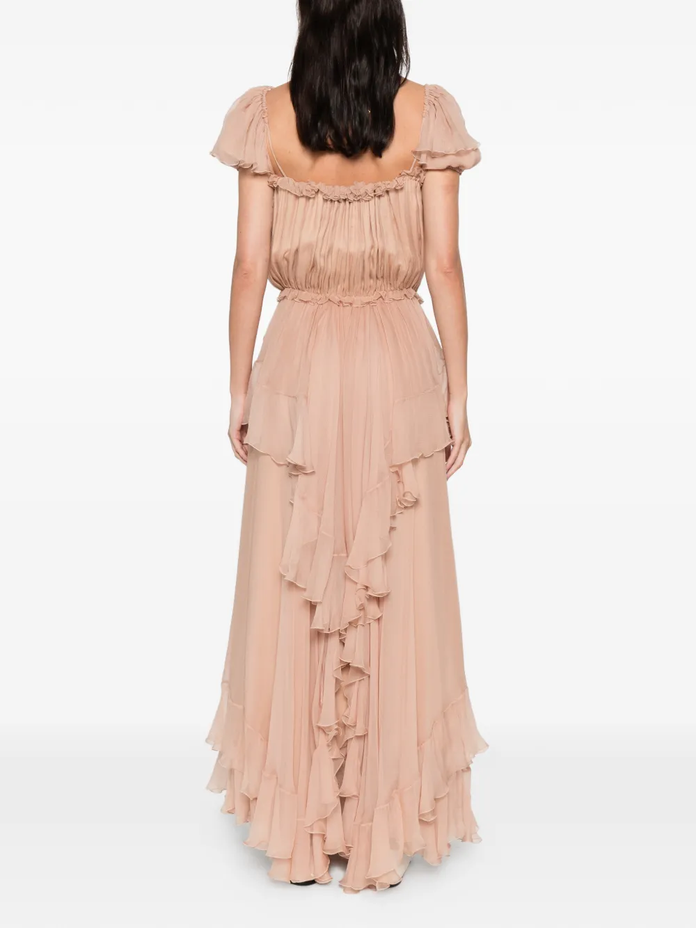 Шелковое платье с оборками Chloé, бежевый