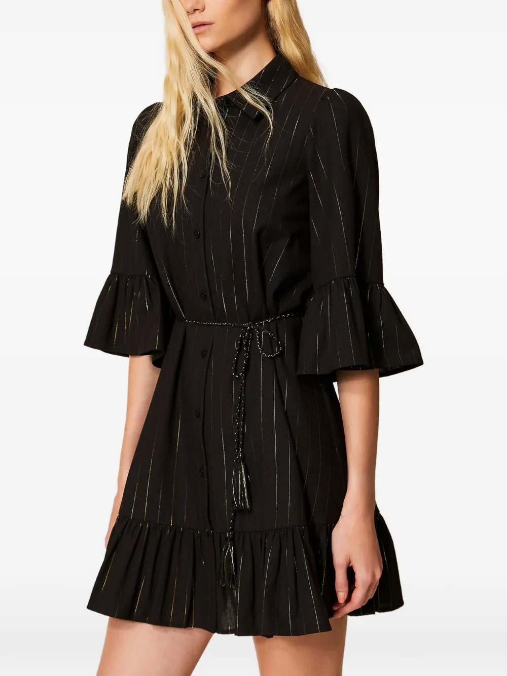 Полосатое платье мини с оборками Twinset, черный