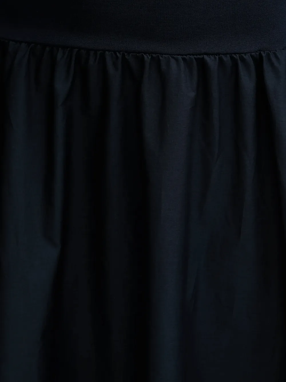 Синяя юбка А-силуэта миди с присборенными деталями и круглым вырезом