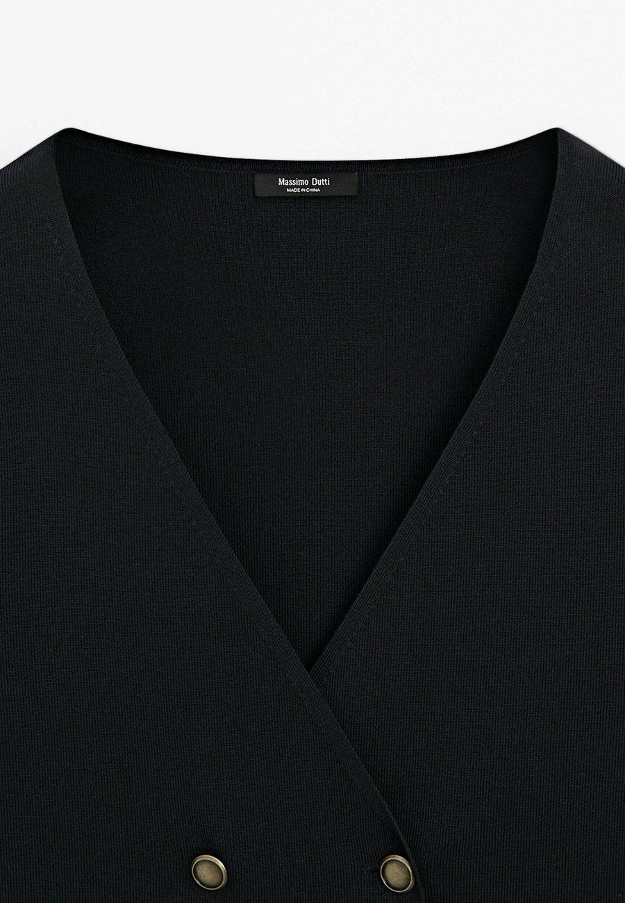 V-образный вырез. Короткие рукава. Вязаный кардиган из тонкой, легкой ткани. Двубортная застежка на пуговицы спереди. Вырез: Низкий V-образный вырезМатериал и уход