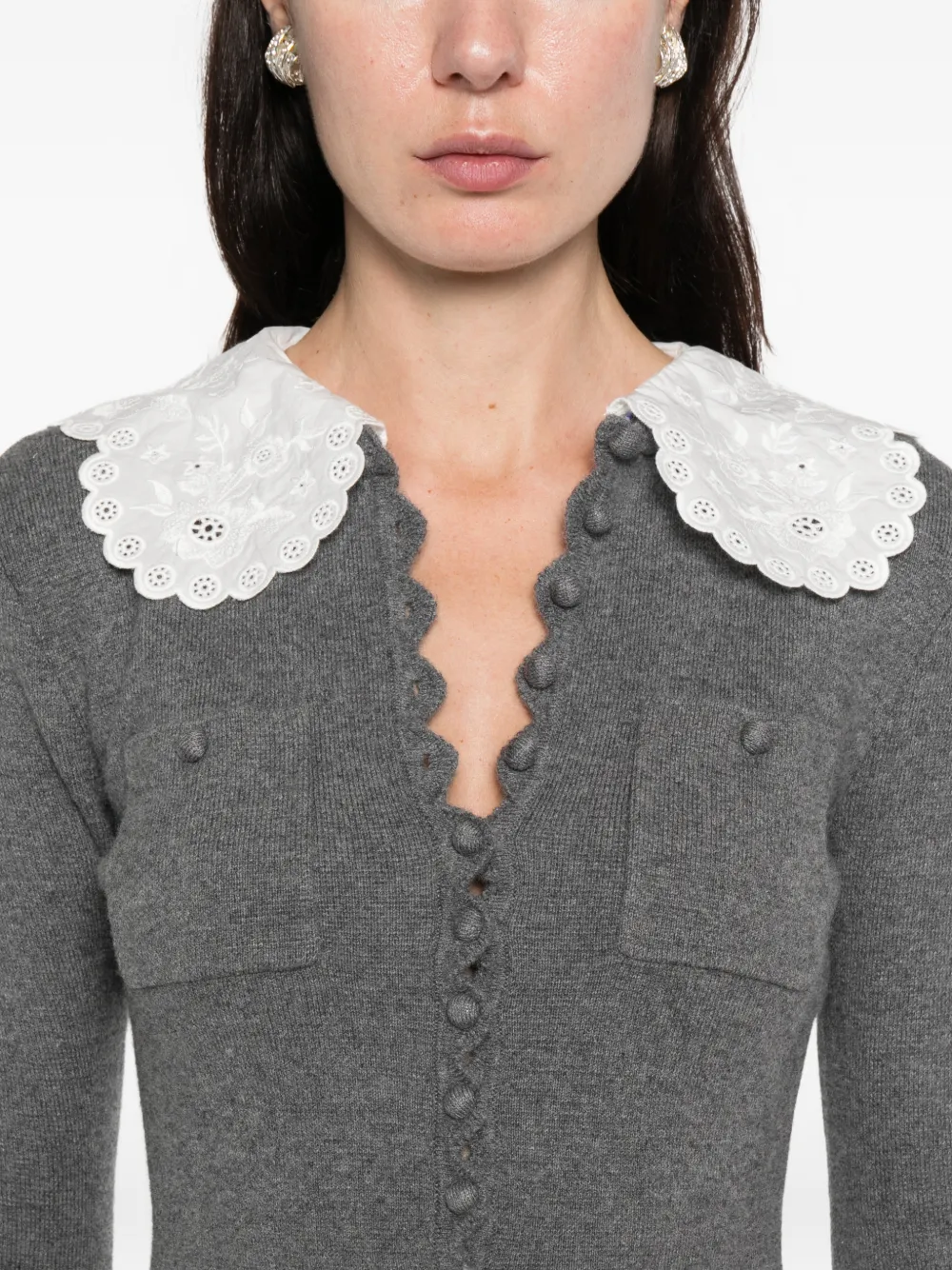 Мини-платье с карманами и кружевным воротником Self-Portrait, серый