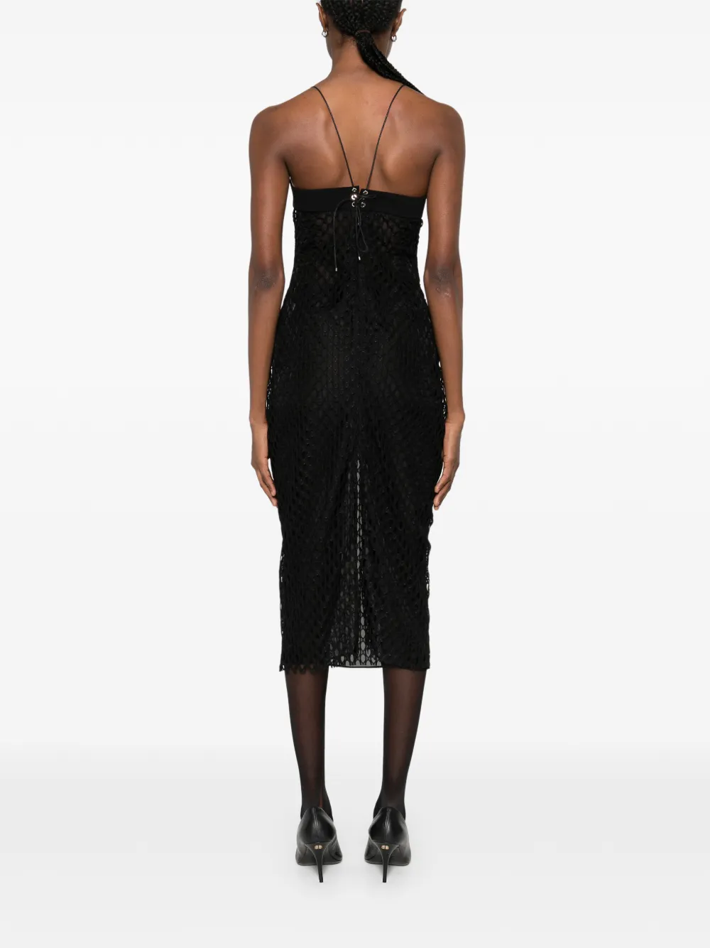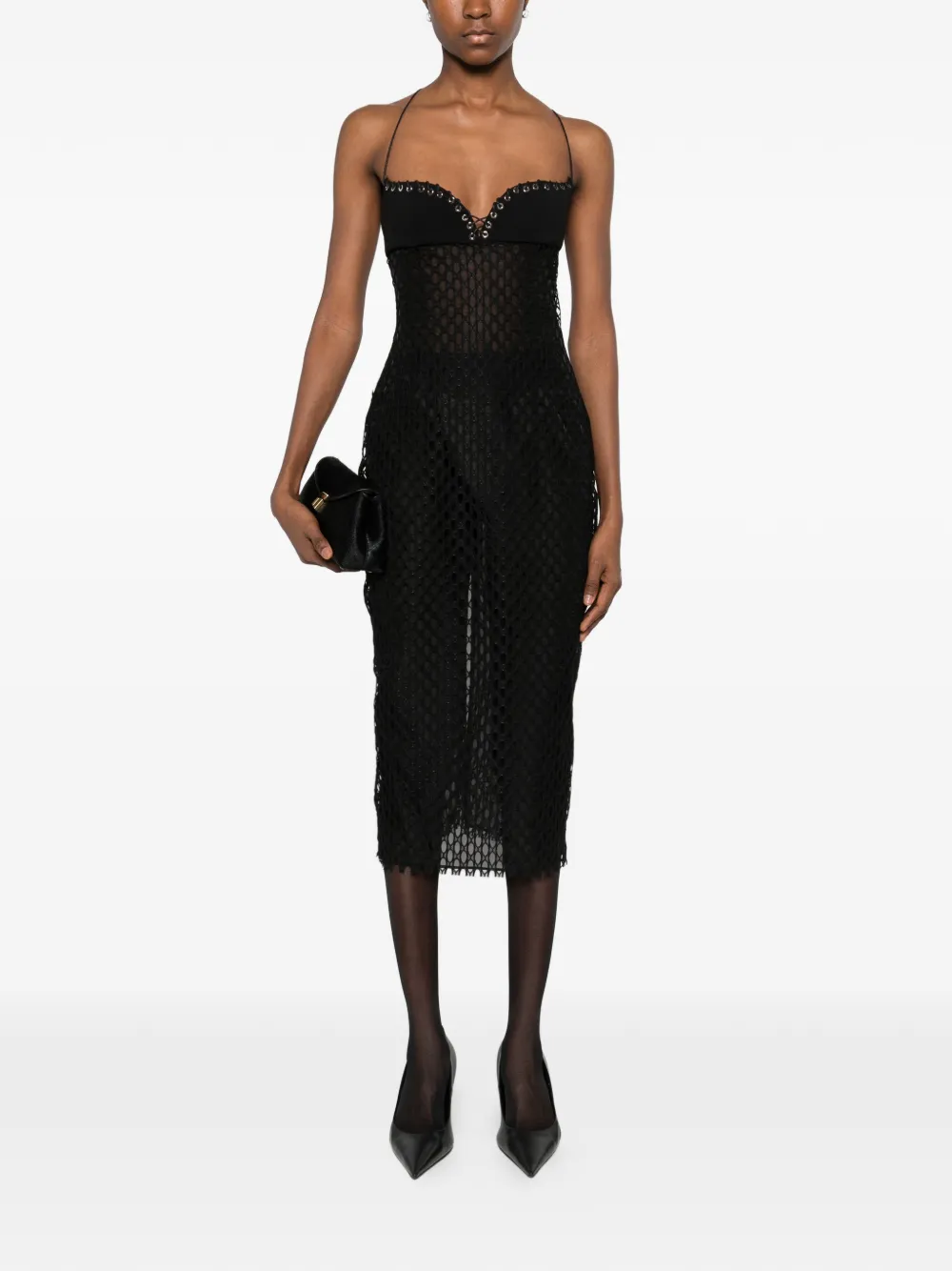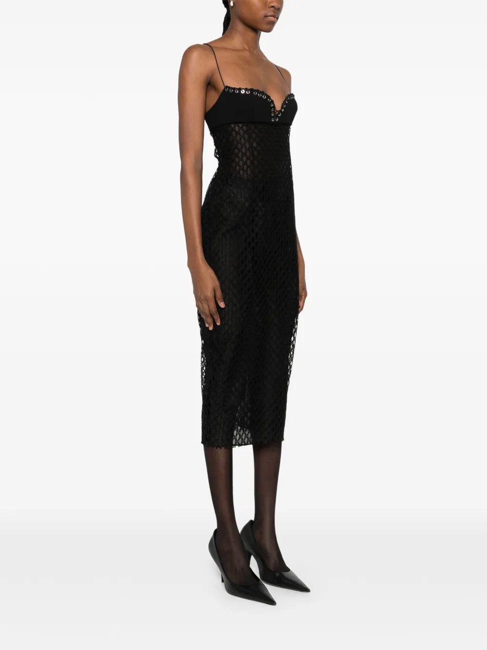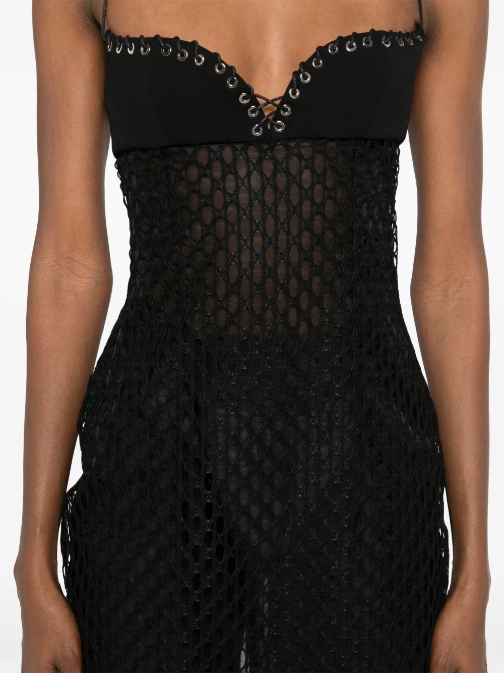 Черные бретели-спагетти с люверсами, лиф с вырезом "сердечко"