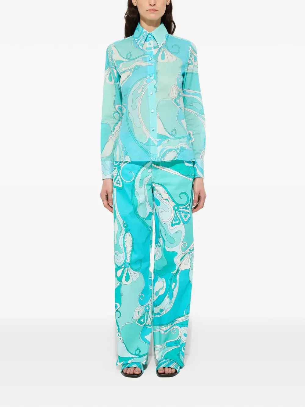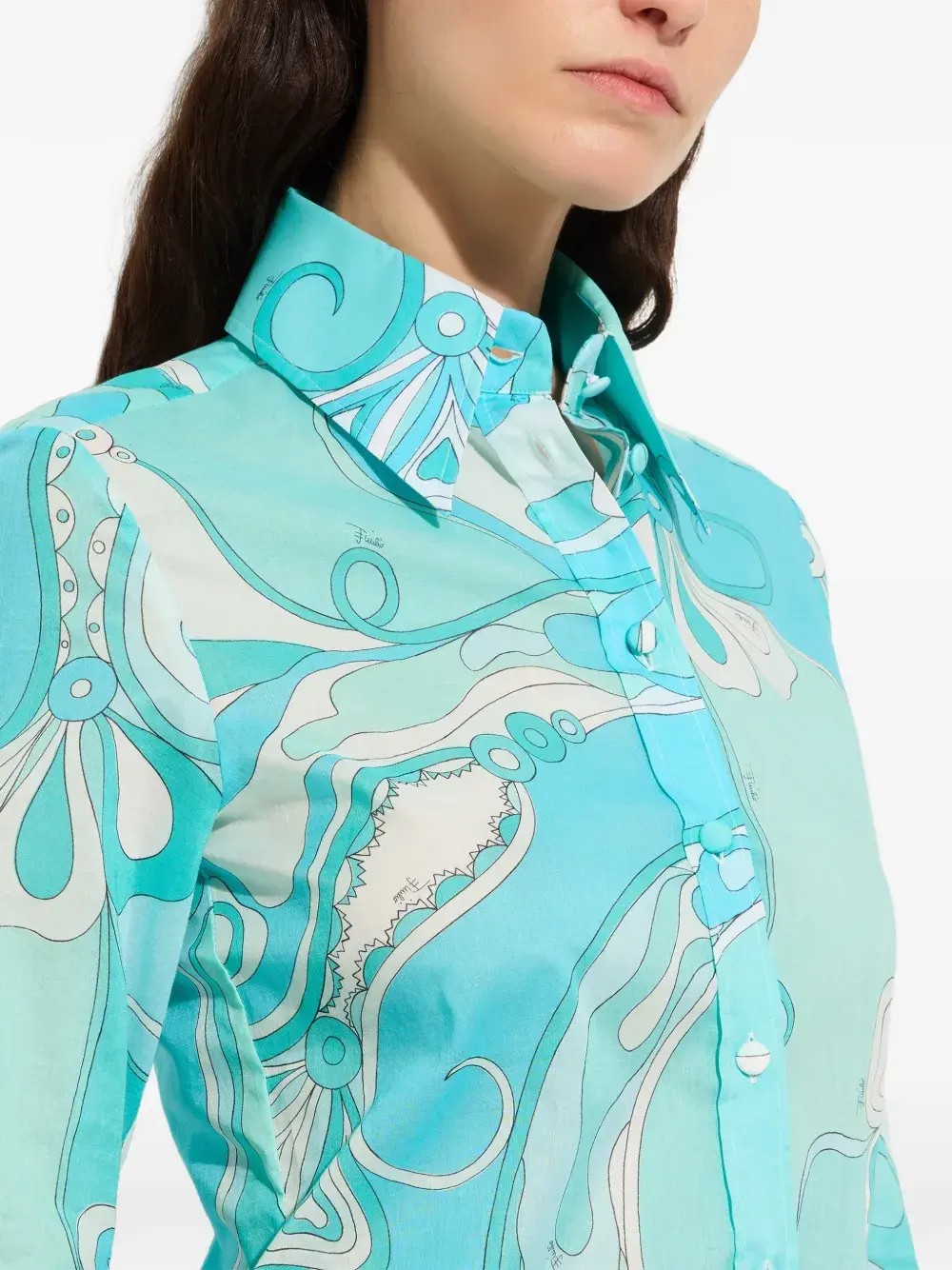 Хлопковая рубашка с принтом "Орхидея" Pucci, синий 81 206₽