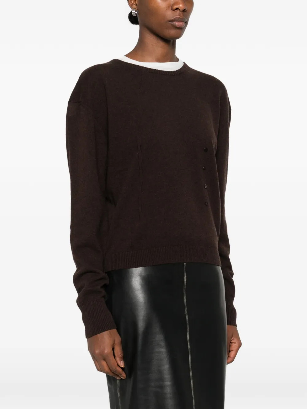 Коричневый джемпер с круглым вырезом, длинными рукавами, рубчатой вязкой и пуговицами