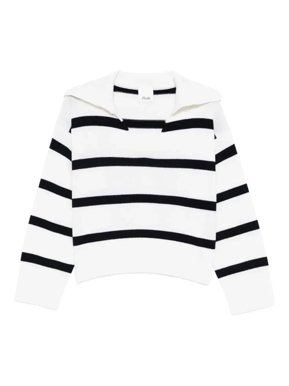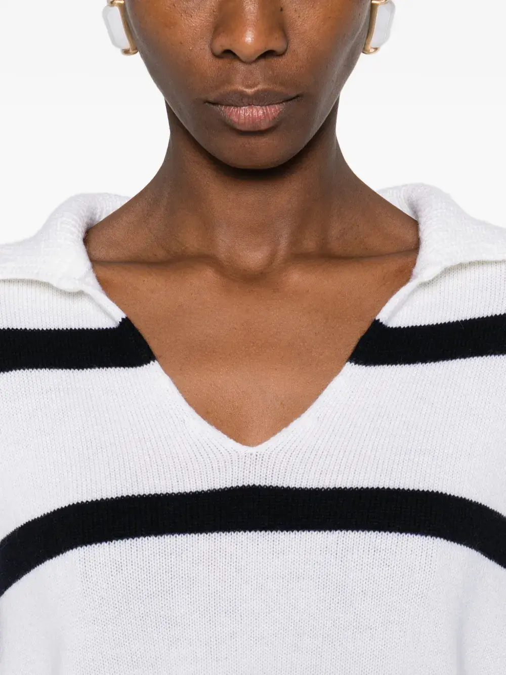 Белый и черный в полоску, с V-образным вырезом, длинными рукавами, в рубчик, трикотаж