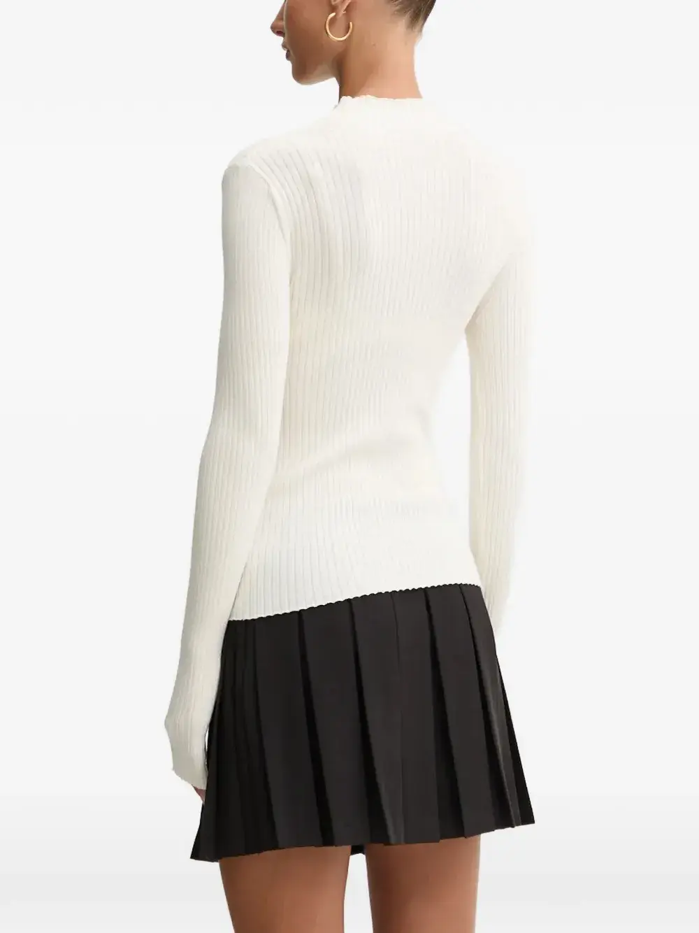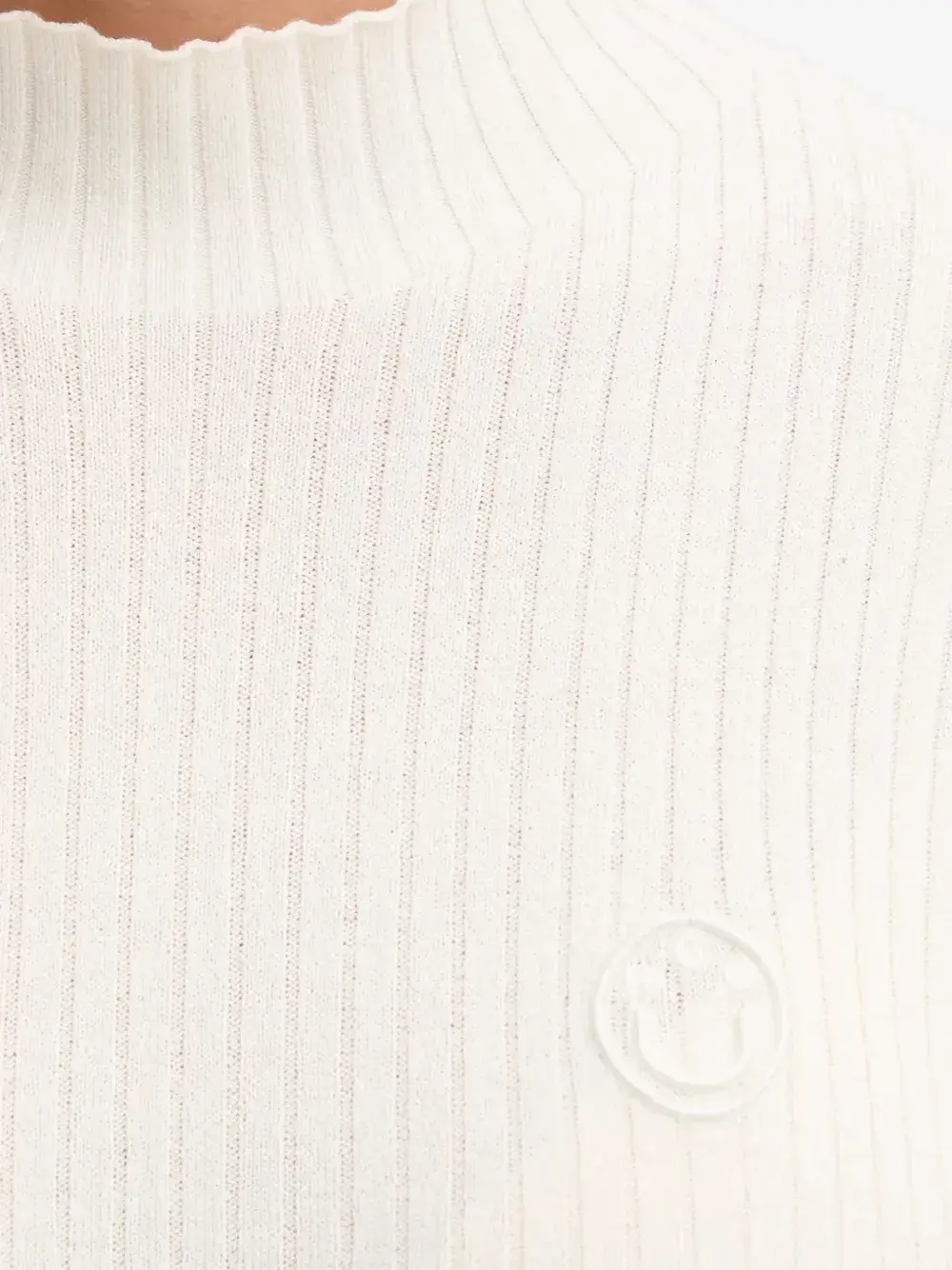 Белый вязаный пуловер в рубчик с круглым вырезом, длинными рукавами и логотипом