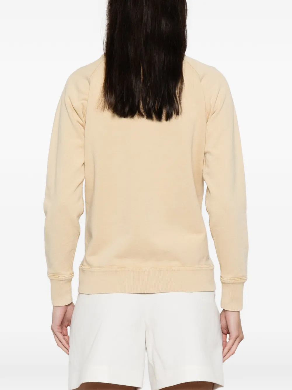Желтая футболка с логотипом, круглым вырезом, длинными рукавами, ребристыми манжетами и ребристым низом
