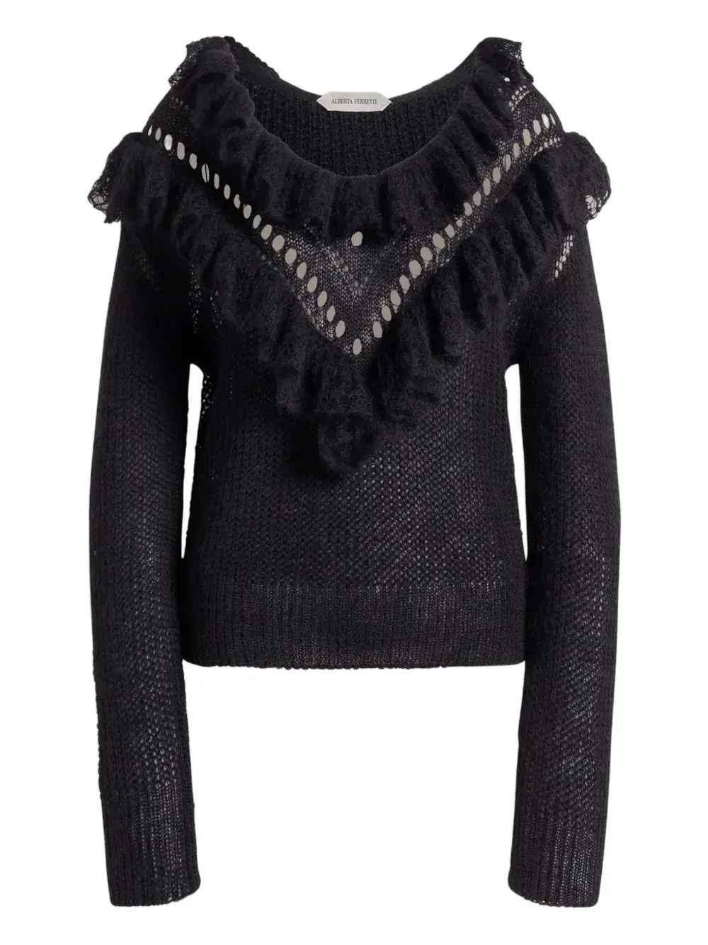 Свитер с оборками Alberta Ferretti, черный 70 681₽