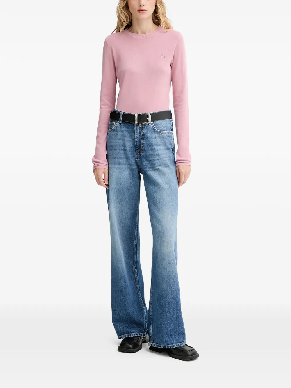 Вышитая роза, логотип, круглый вырез, длинные рукава, трикотажная отделка