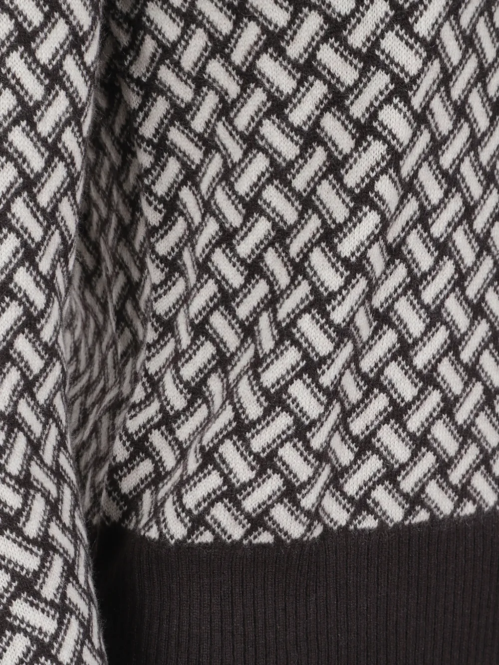 Черный/белый узорчатый трикотаж, круглый вырез, ребристый низ, ребристые манжеты