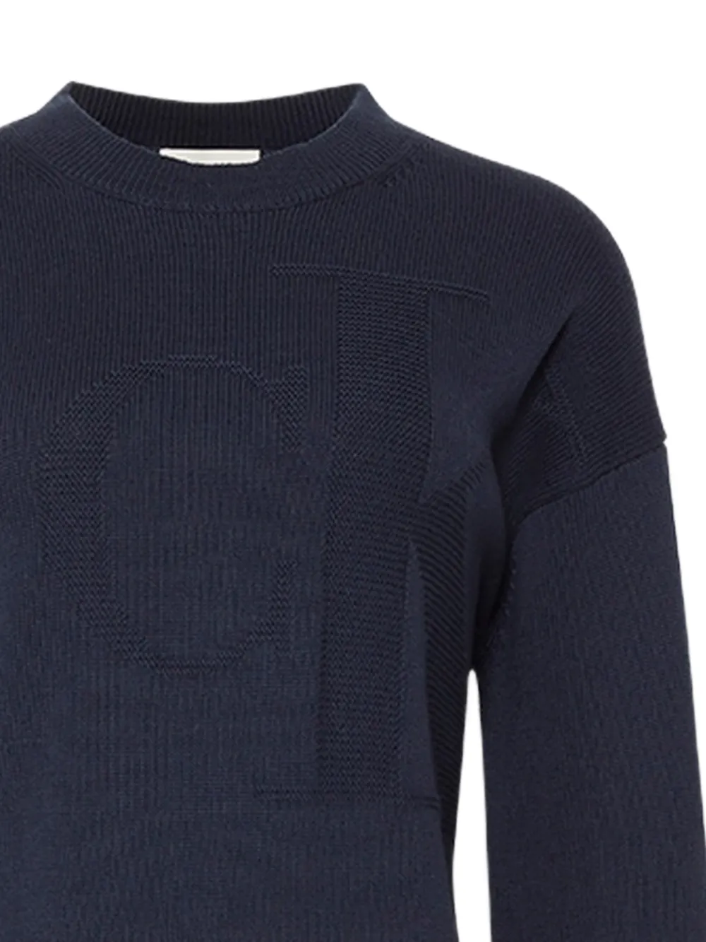 Темно-синий круглый вырез длинные рукава ребристый край