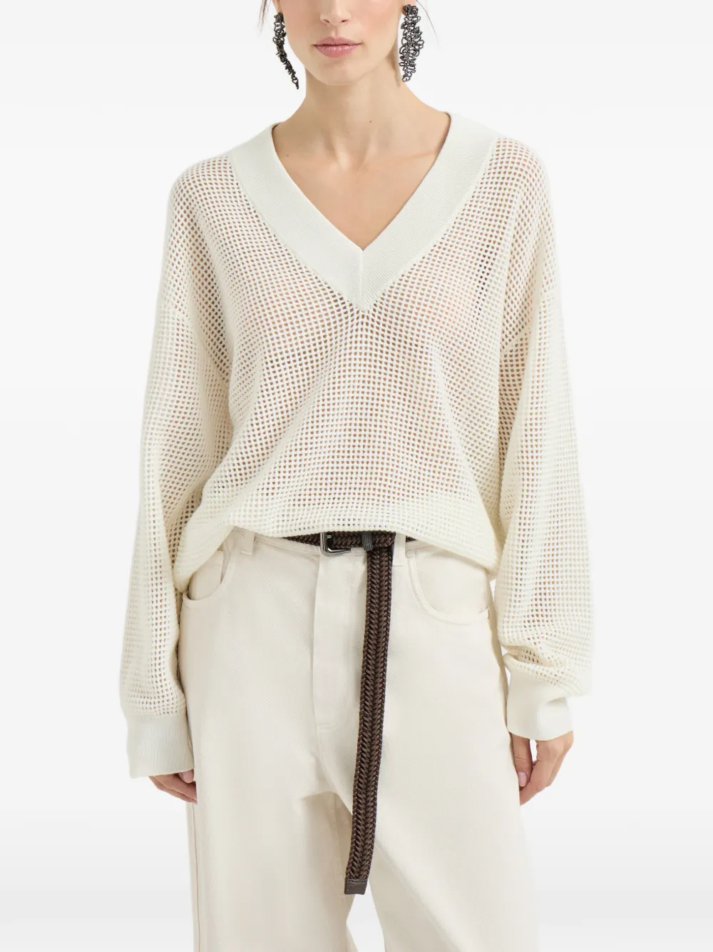 Свитер с V-образным вырезом Brunello Cucinelli, белый