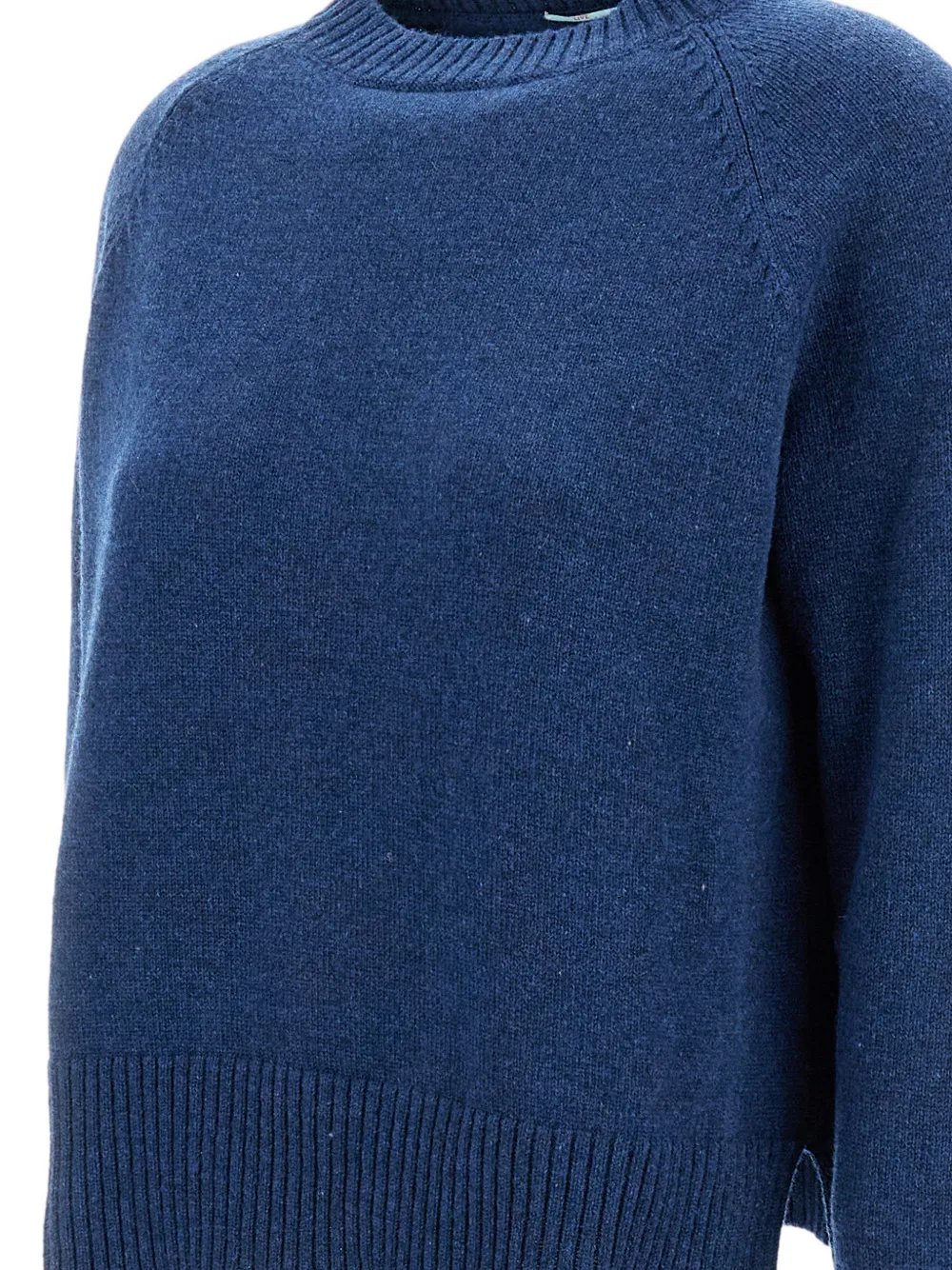 Синий свитер с круглым вырезом и рубчатой отделкой