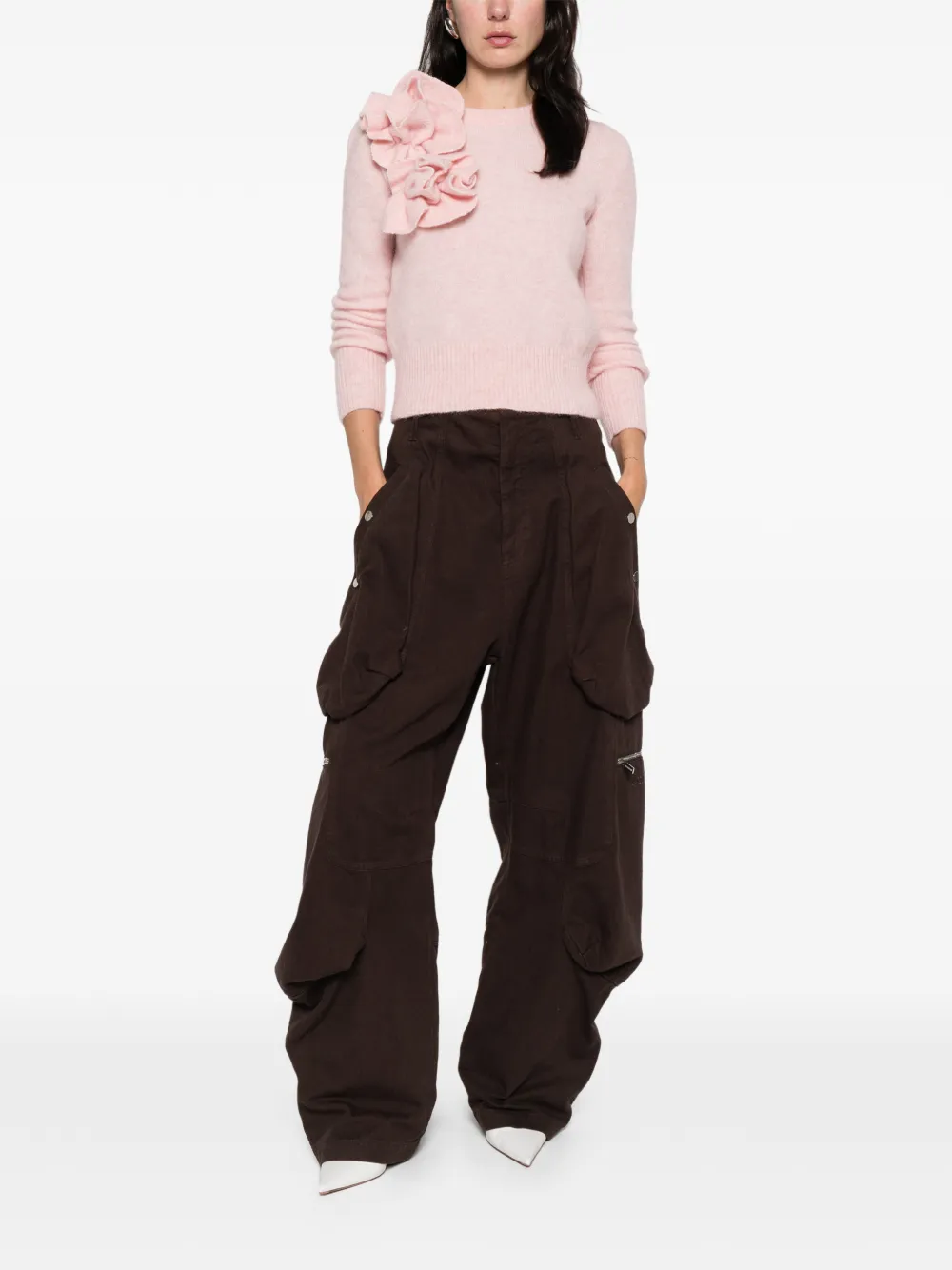 Свитер с оборками и цветами Marques'Almeida, розовый