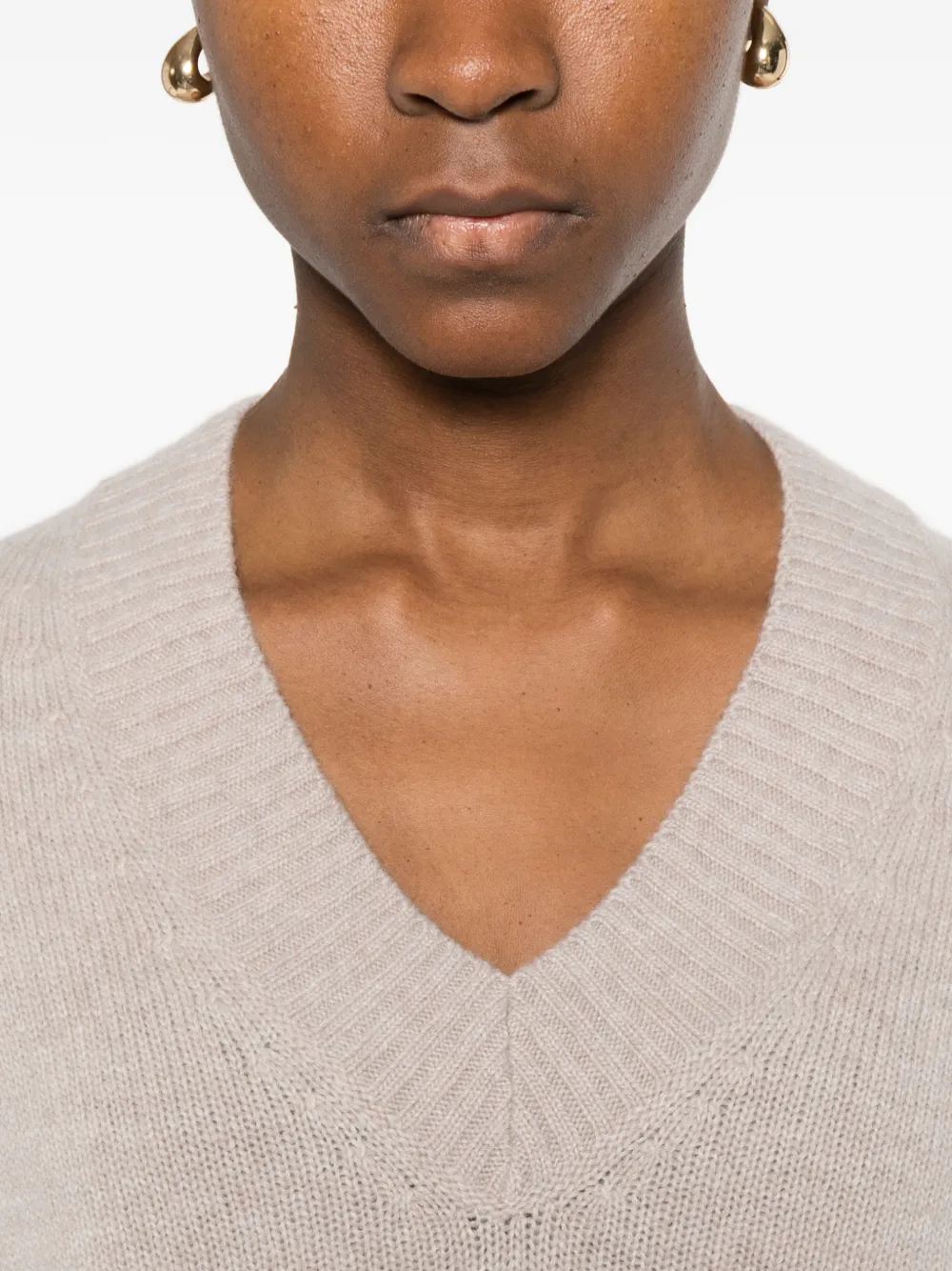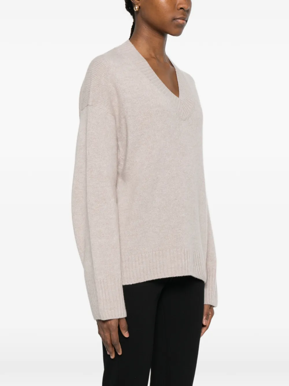 Бежевый вязаный V-образный вырез ребристый низ ребристые манжеты длинные рукава