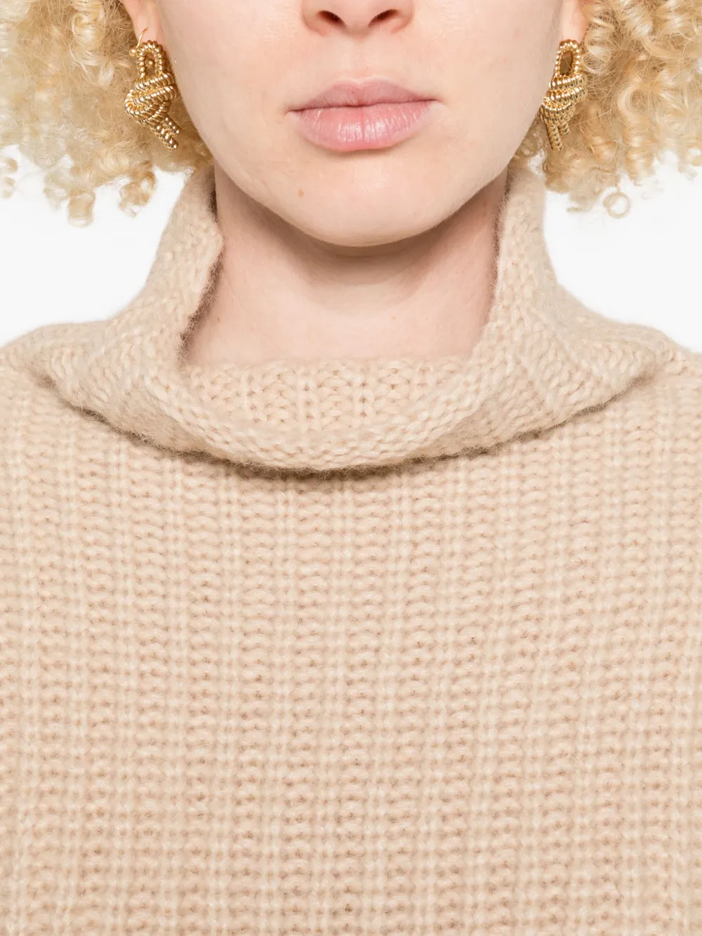 Свитер в рубчик с высоким воротником Ulla Johnson, бежевый