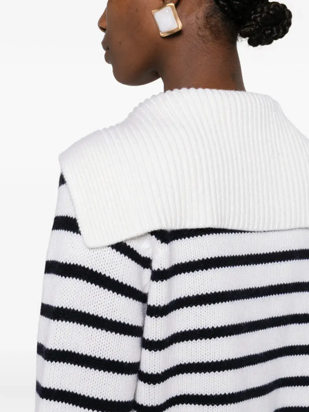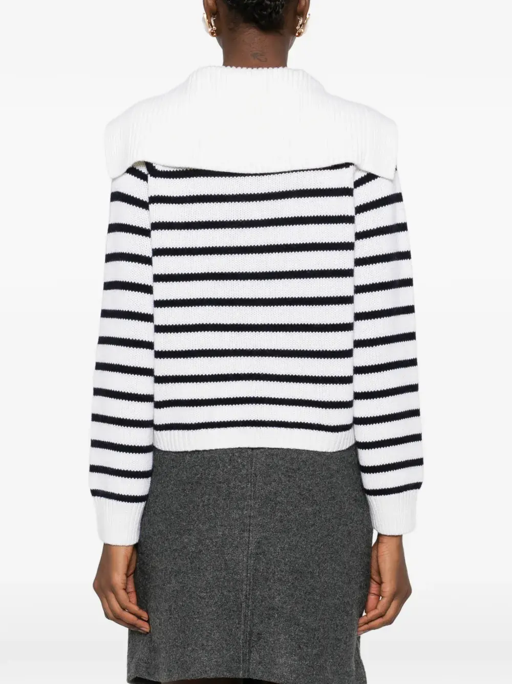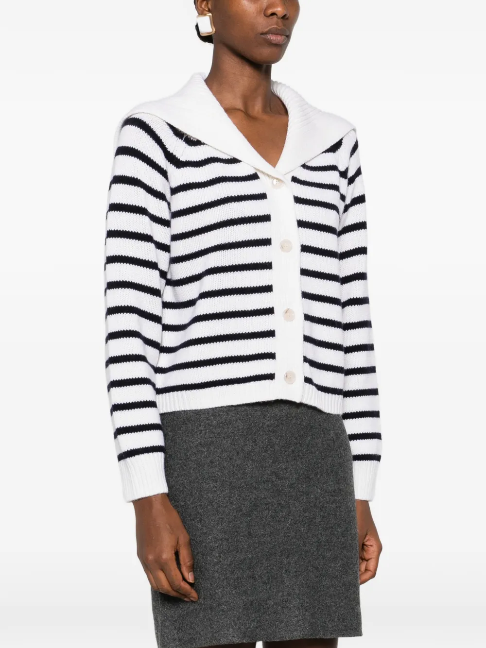 Белый и черный полосатый узор, застежка на пуговицы, длинные рукава, трикотажное исполнение