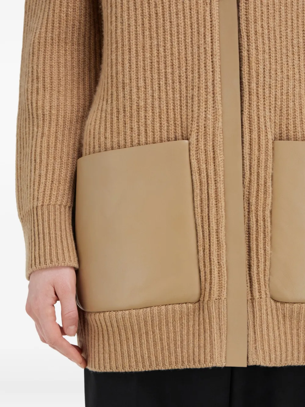Кардиган с кожаной отделкой Ferragamo, бежевый 213 048₽