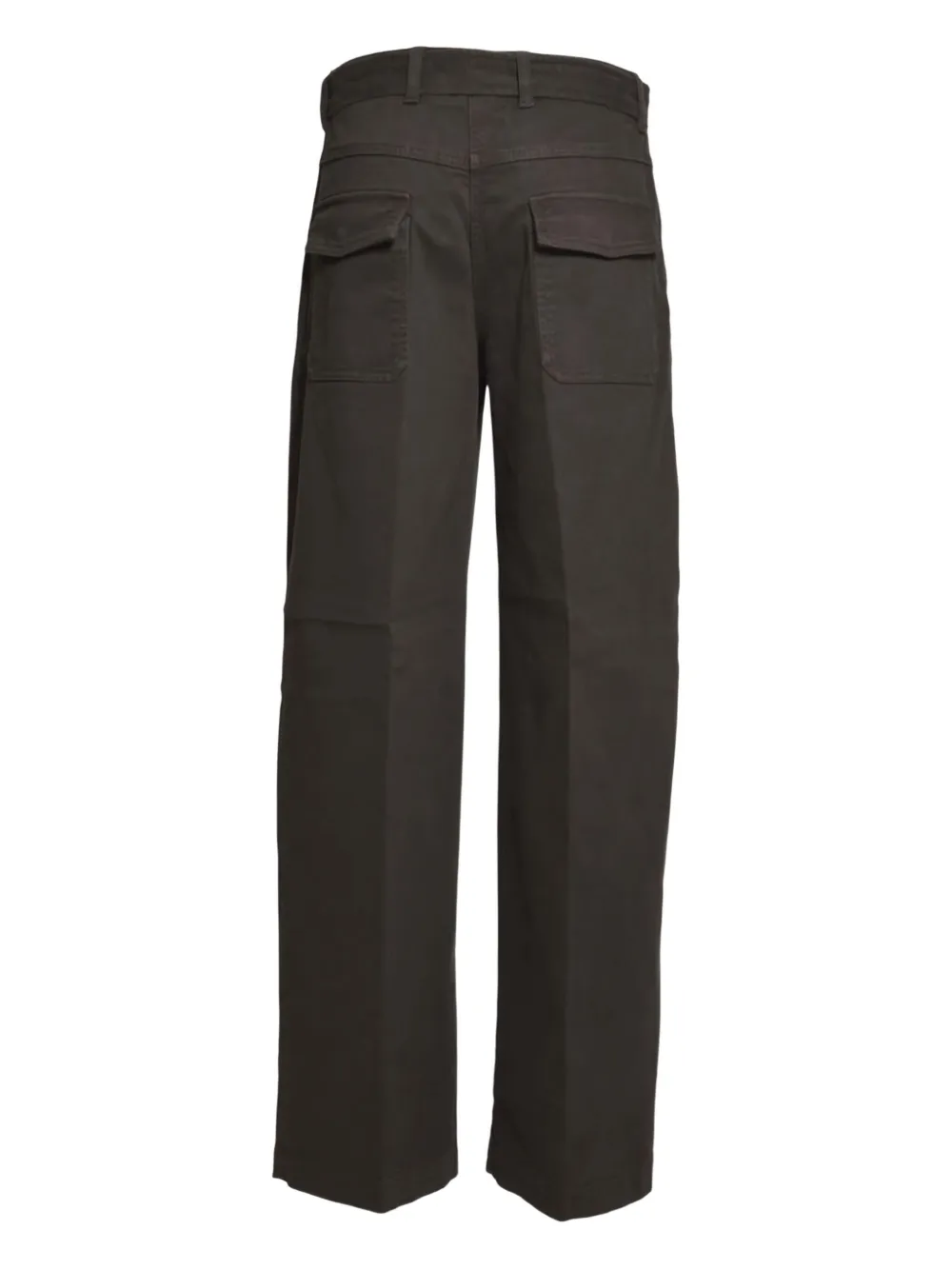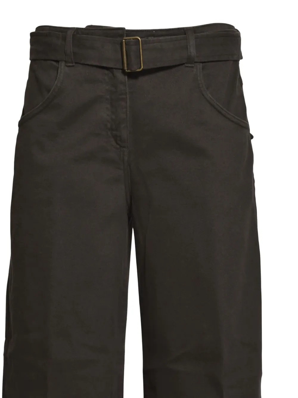 Коричневый с поясом, задними клапанами на карманах, застёжкой-пряжкой