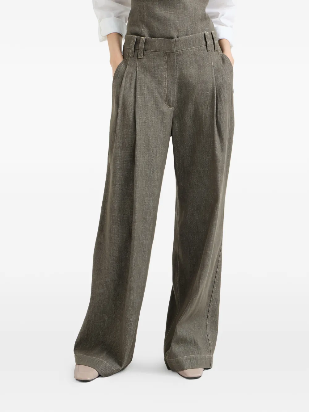 Брюки со складками Brunello Cucinelli, зеленый 168 973₽