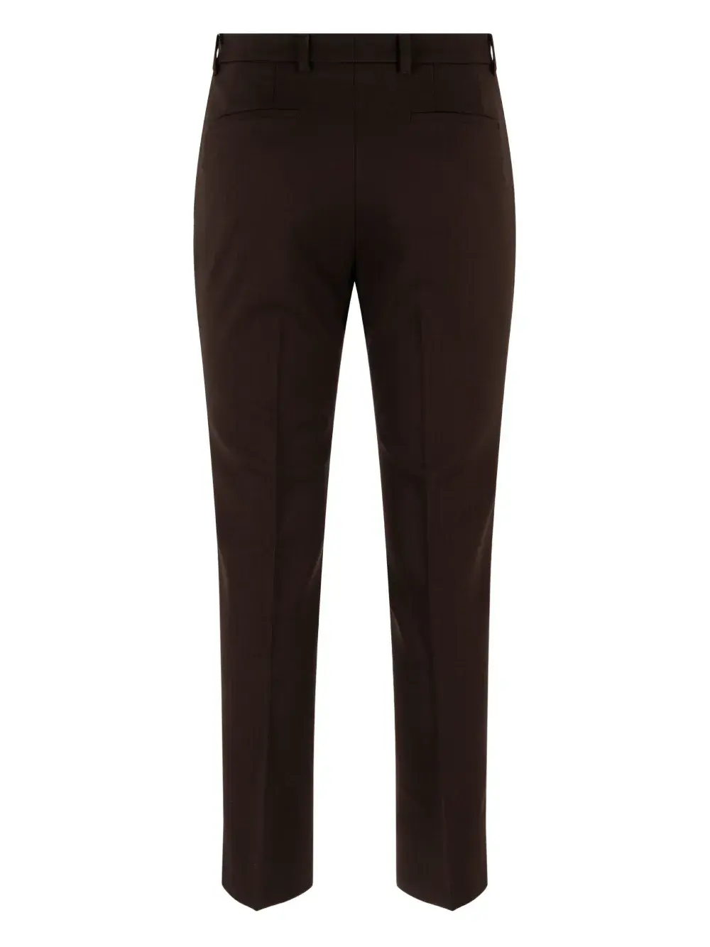 Коричневые брюки с разрезом, шлевками для ремня, прорезными задними карманами, скрытой застёжкой и стрелками