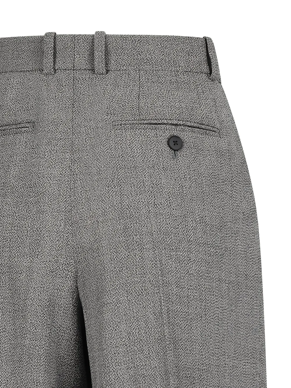Серые манжеты с отворотами, скрытая застёжка, шлевки для ремня, складки