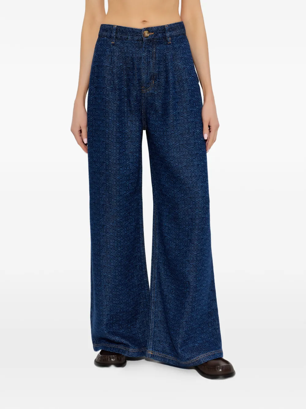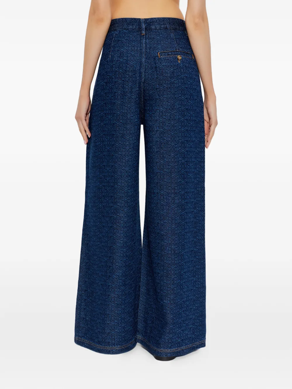 Индиго, узор по всей поверхности, застёжка на пуговицы, шлёвки для пояса, боковые карманы в шве, задний прорезной карман