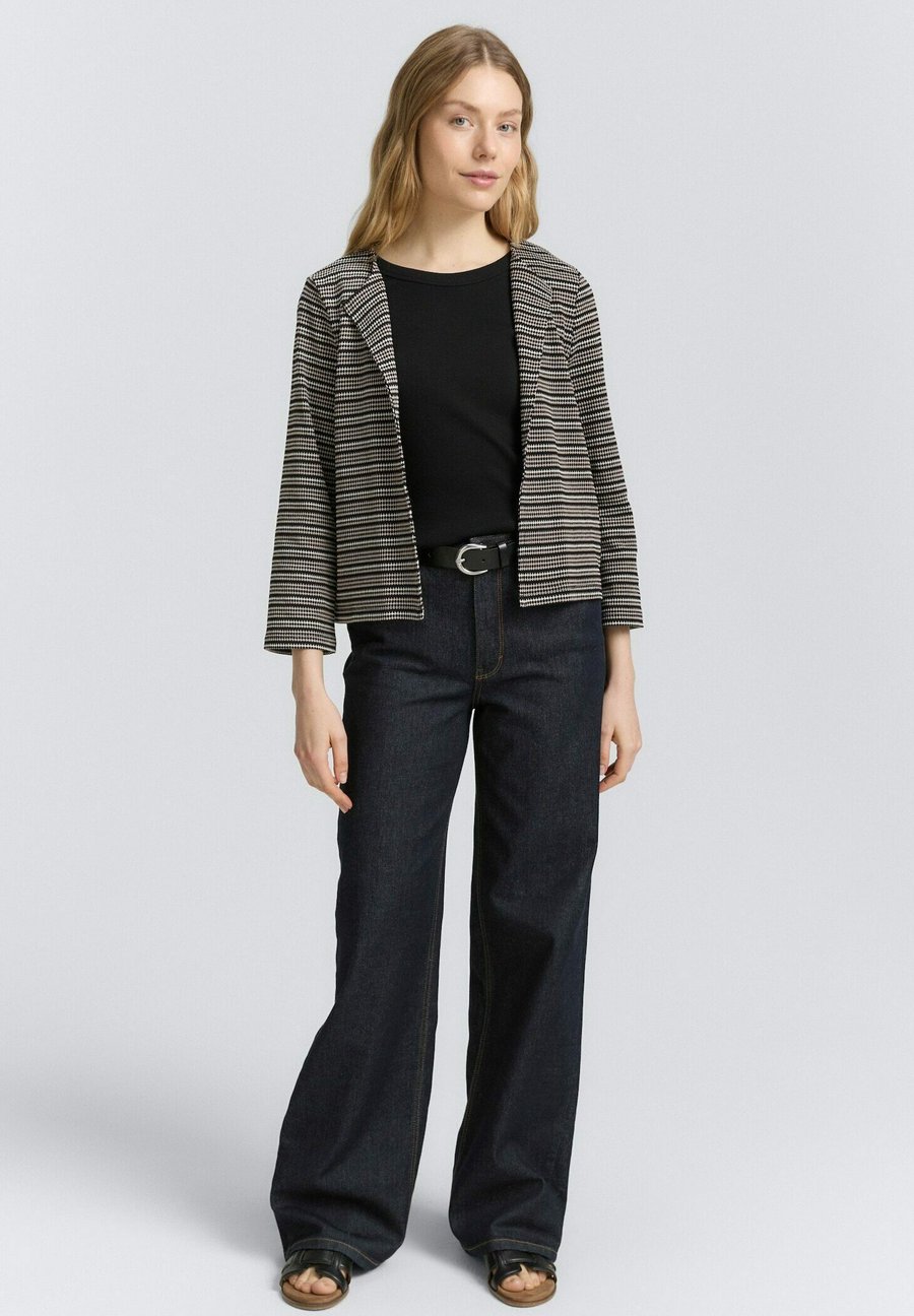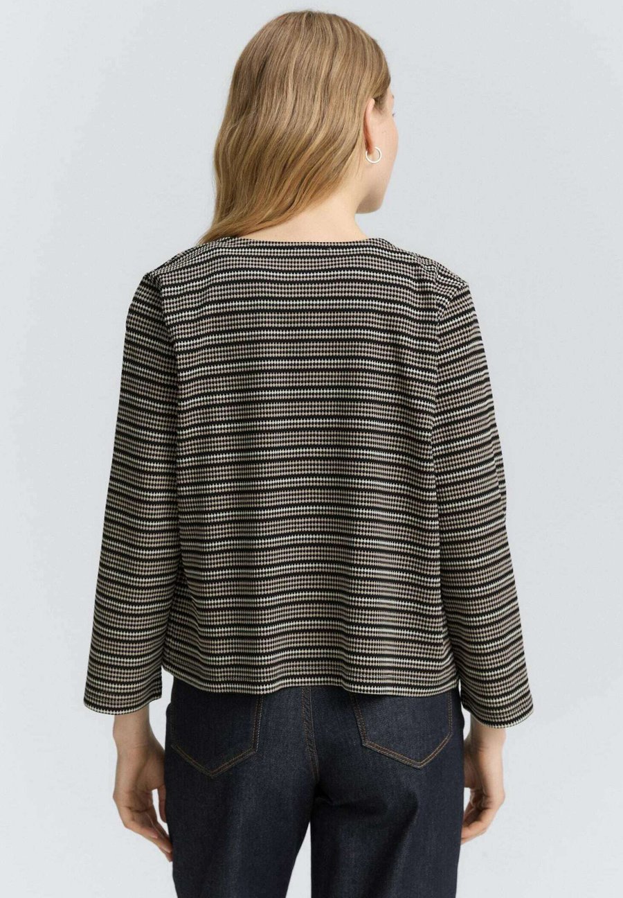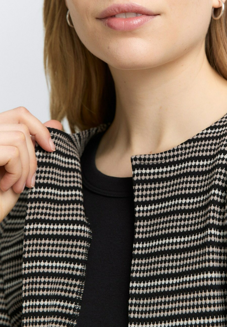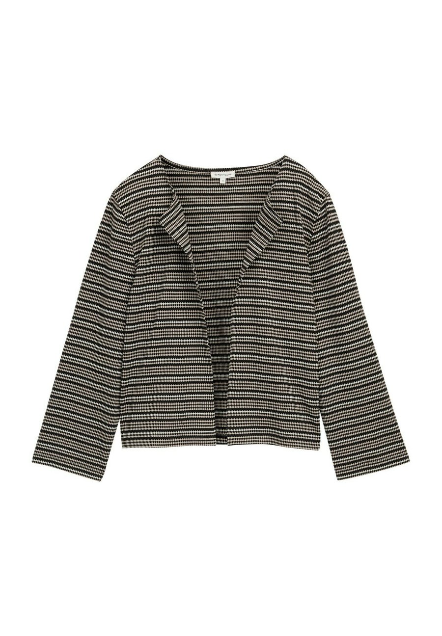Полосатый кардиган из фактурной жаккардовой ткани. Вырез горловины: круглый.Материал и уход