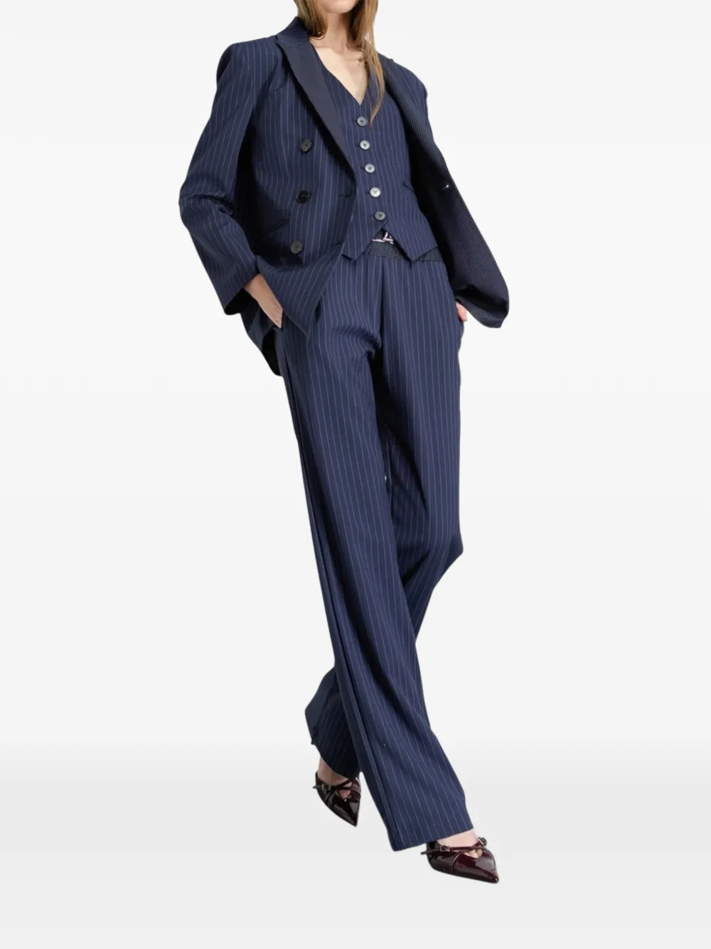 Синие брюки в полоску с эластичным поясом на завязках и прямыми штанинами