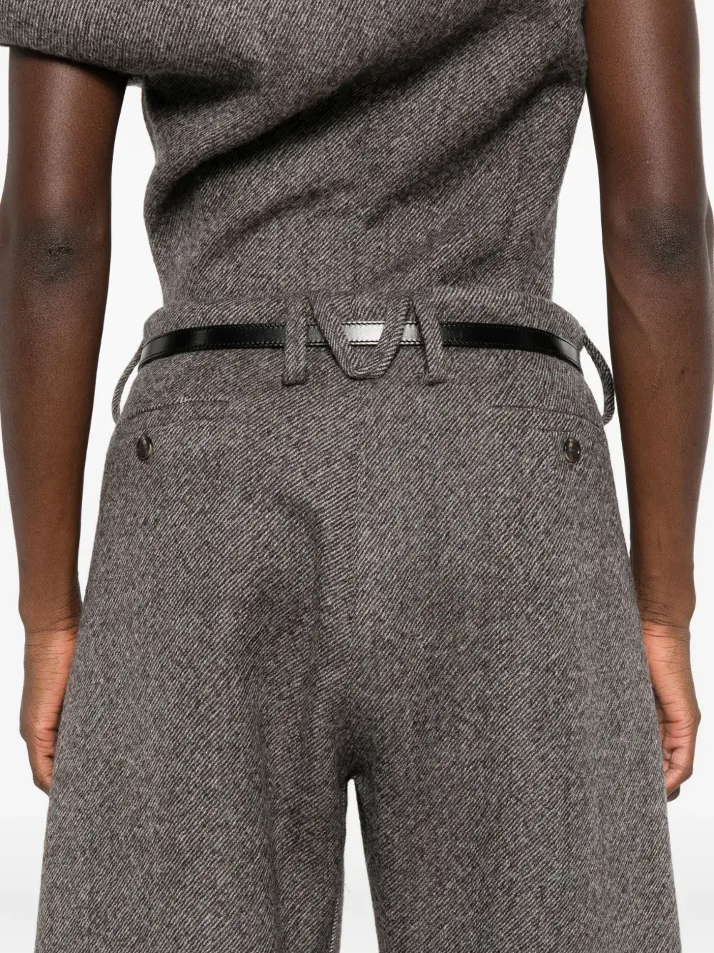 Серый ремень с петлями, передние карманы, скрытая застежка, стрелки, елочка