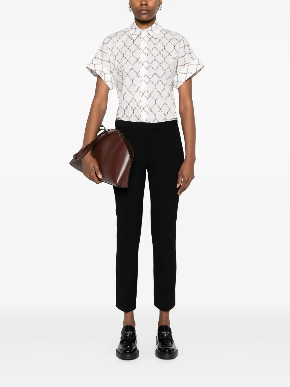 - узкий крой: брюки плотно сидят на талии, облегают бедра и голени, но не обтягивают лодыжки