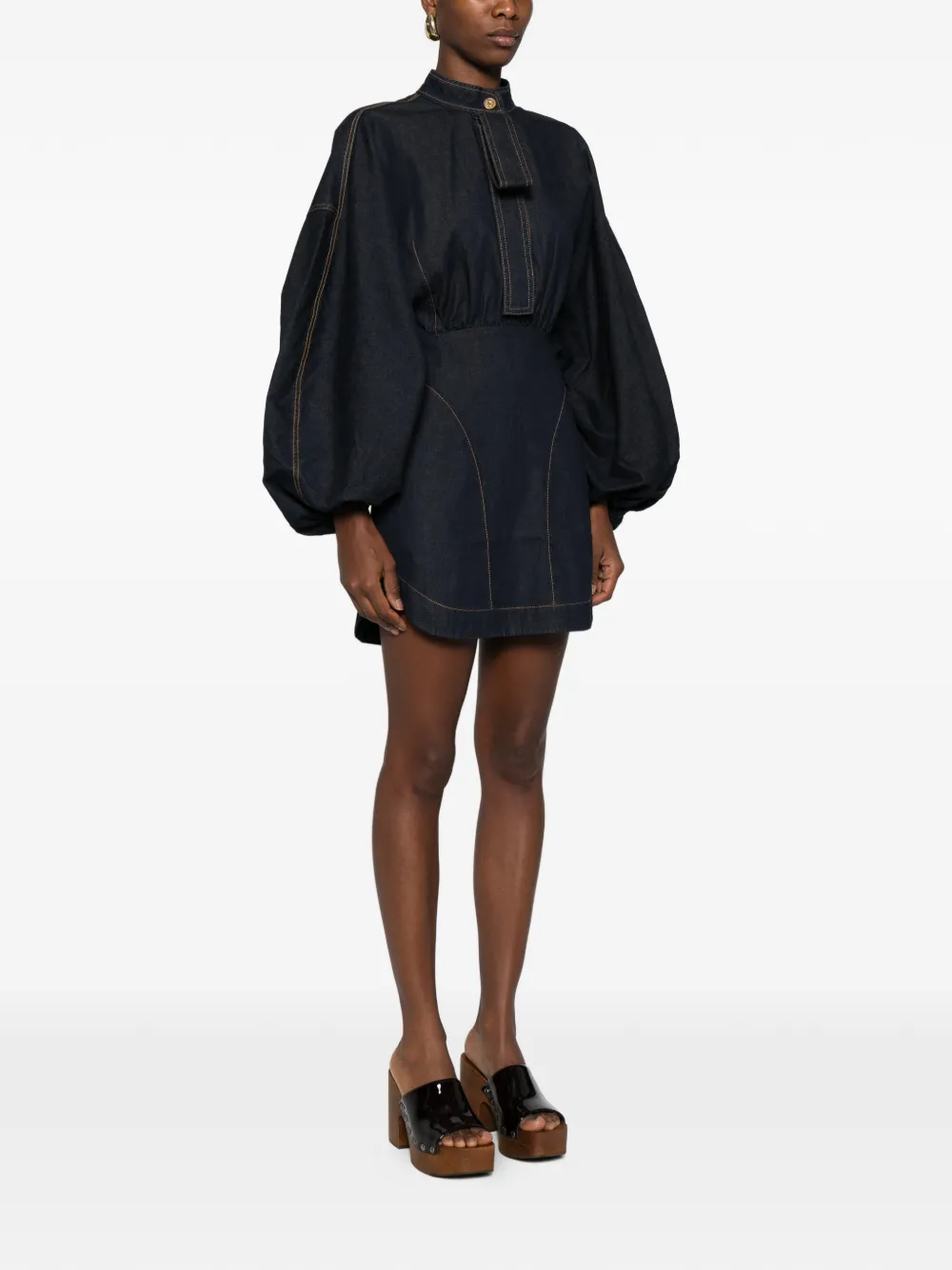 Джинсовое мини-платье с рукавами «епископ» Zimmermann, синий