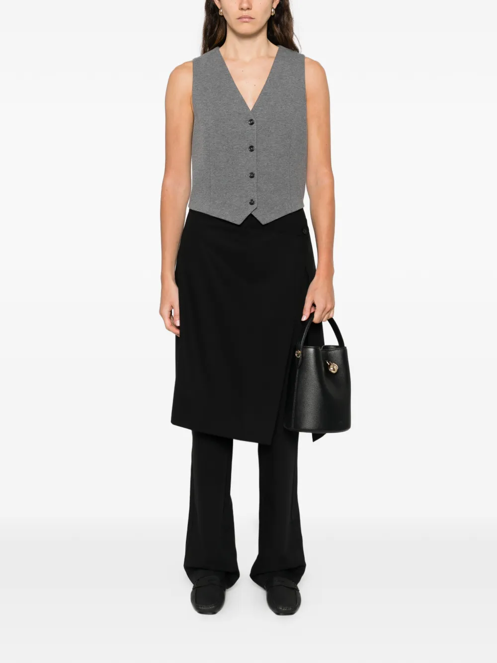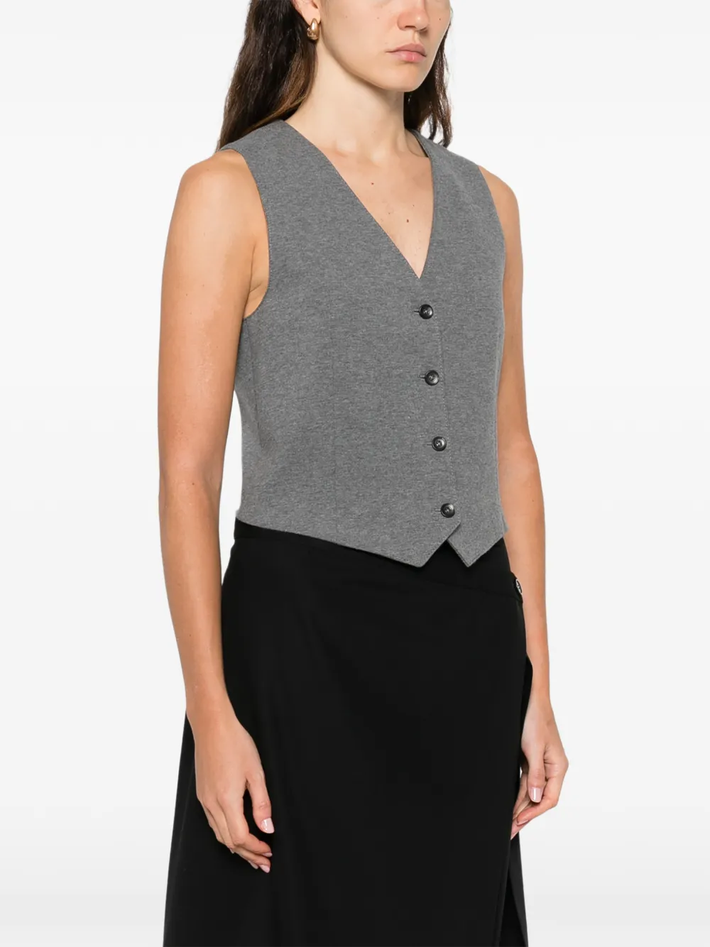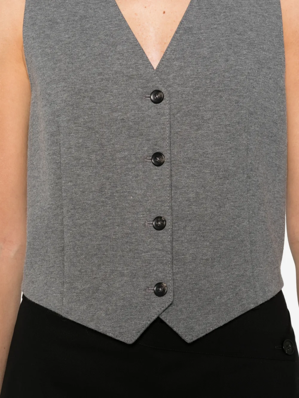 Светло-серый жилет на пуговицах с V-образным вырезом, без рукавов