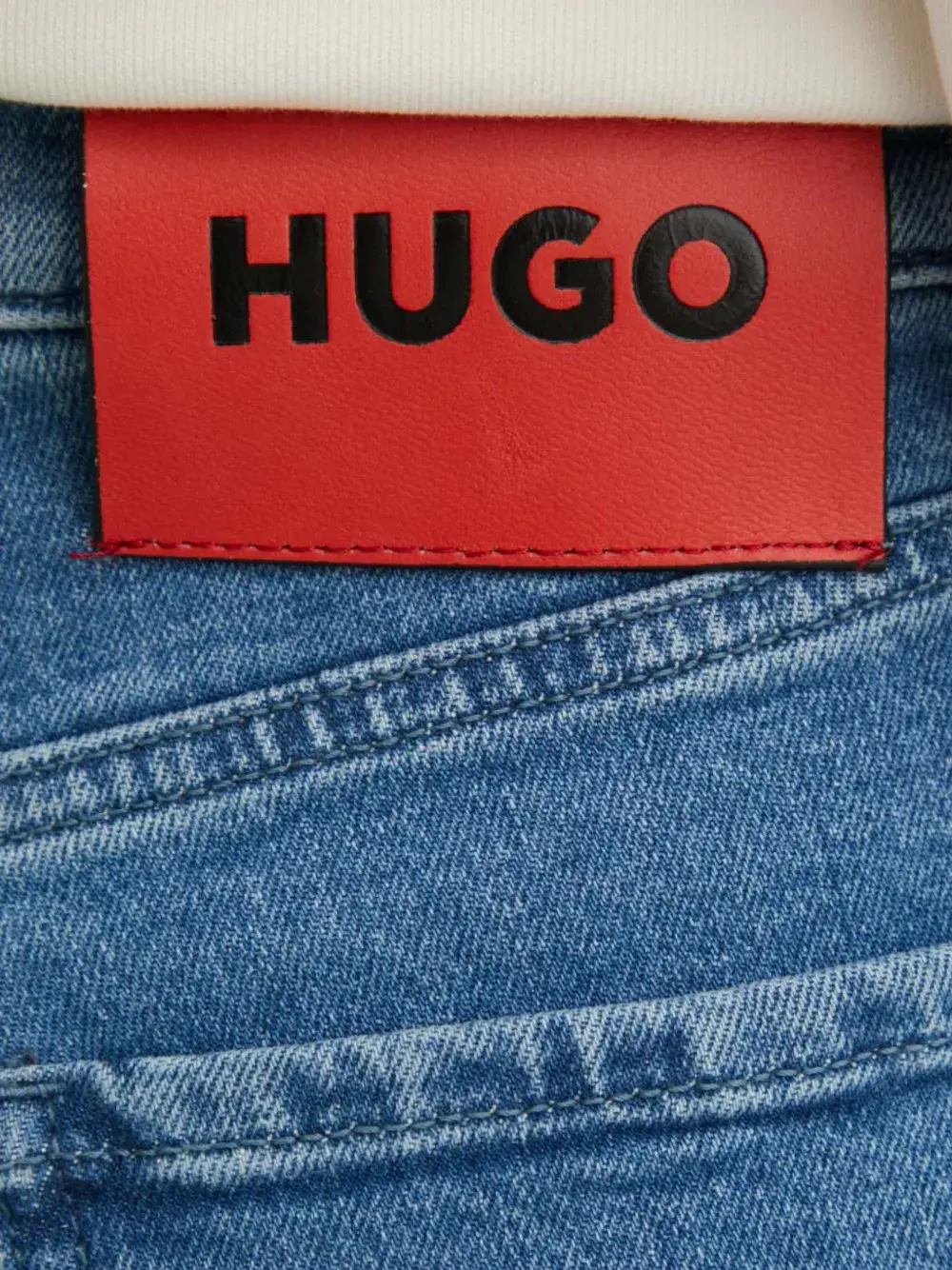 Светло-голубые, нашивка с логотипом, шлевки для пояса, карманы