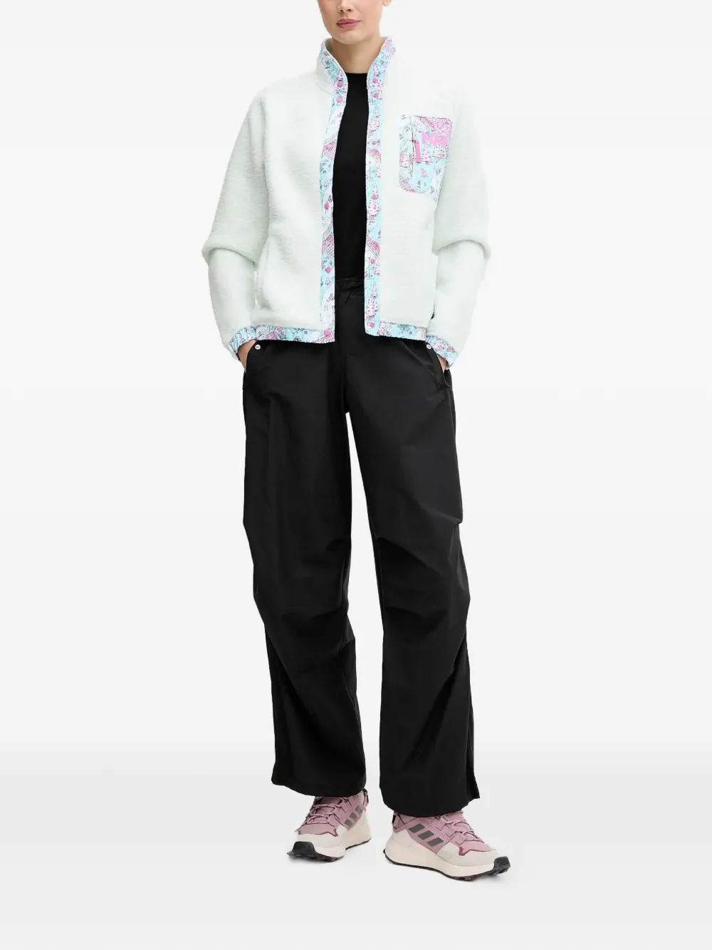 Светло-голубой, узорчатая отделка, нагрудный карман, застежка на кнопки, стойка-воротник, текстурированный