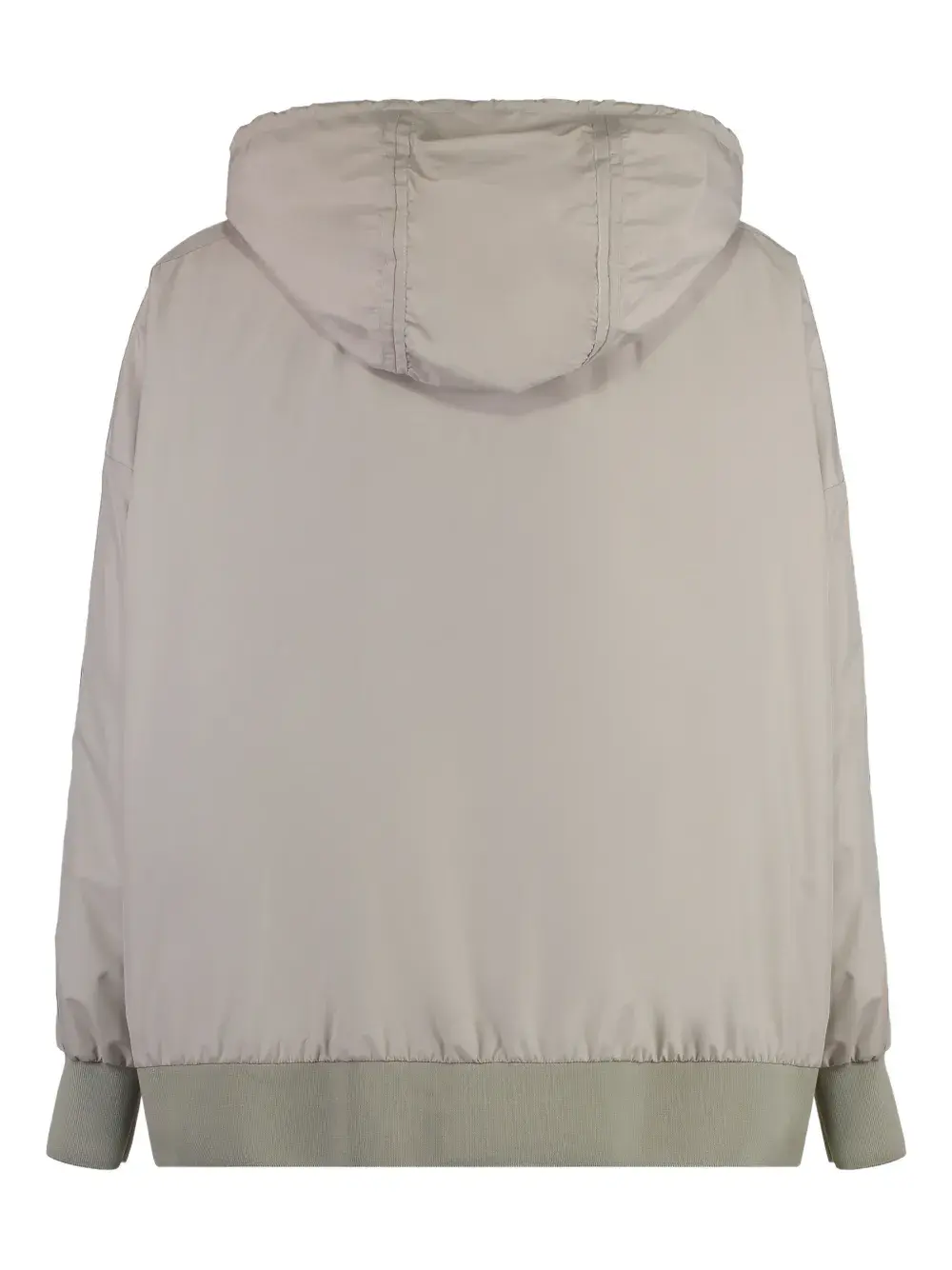 Жемчужно-белый регулируемый капюшон на шнурке, два кармана на молнии, эластичные (в рубчик) отделки