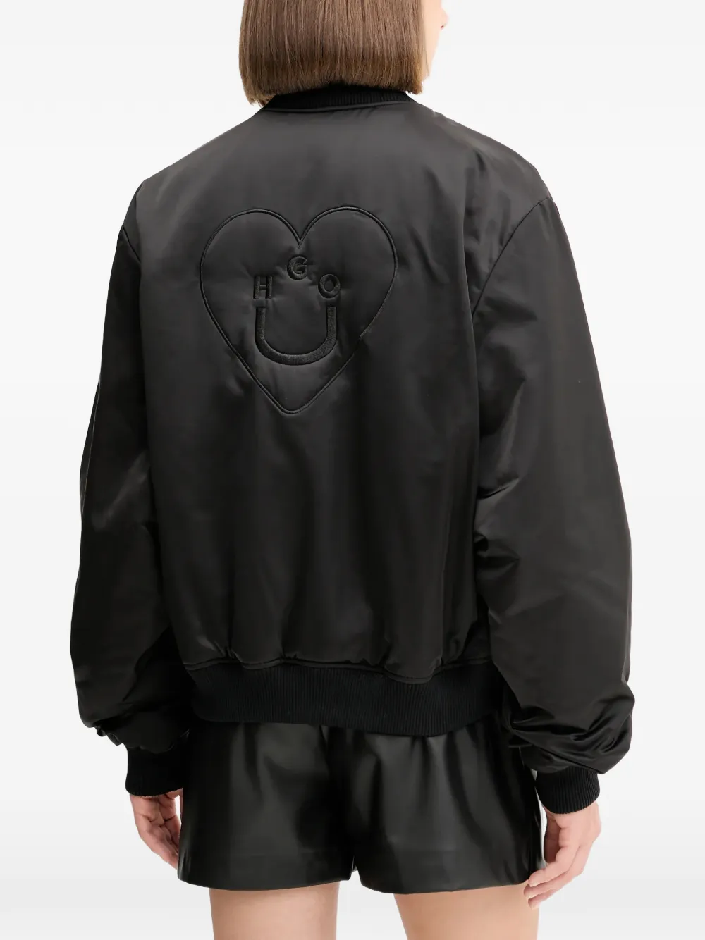 Черные ребристые отделки, застежка на кнопки, логотип Happy HUGO, боковые карманы, длинные рукава