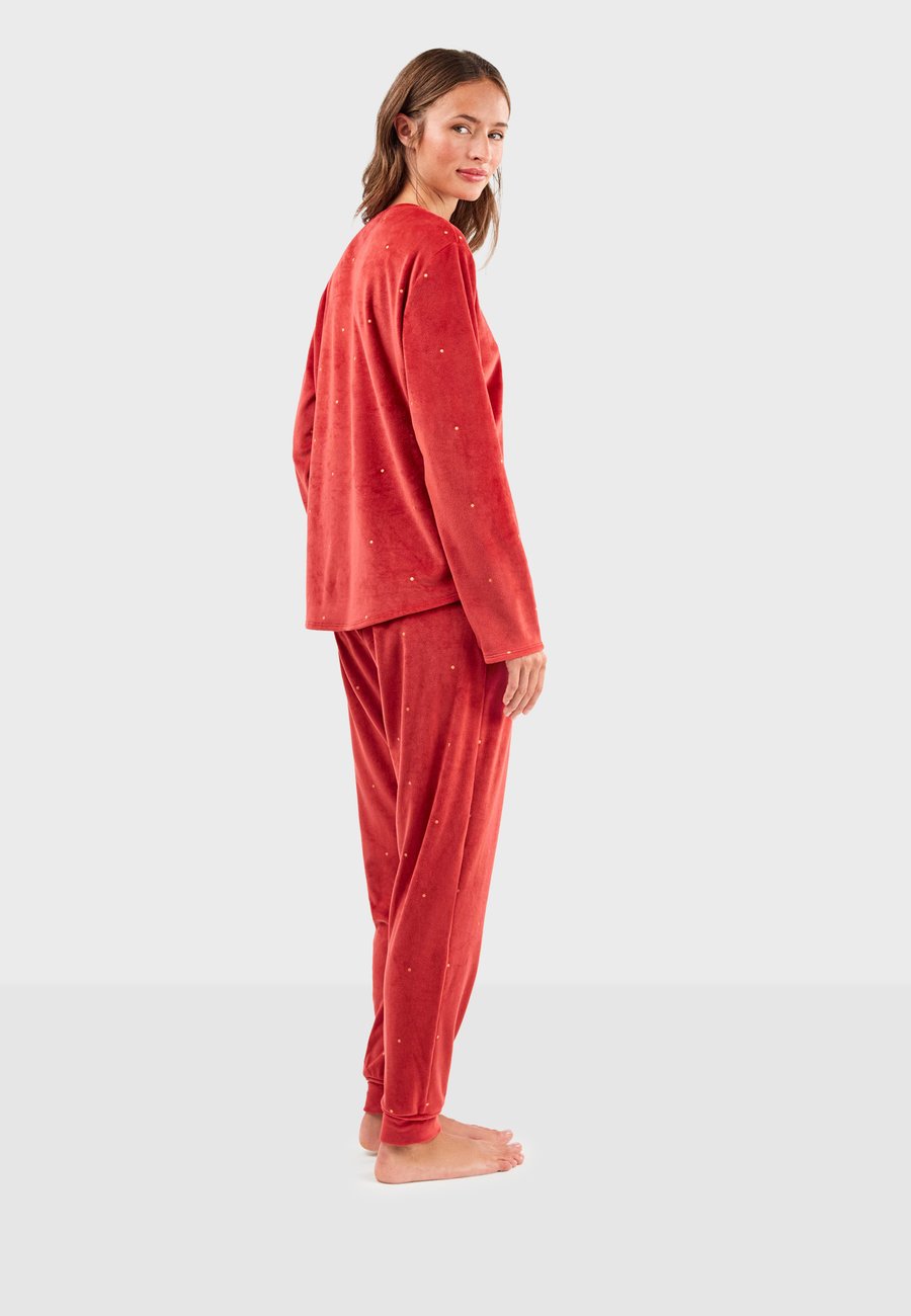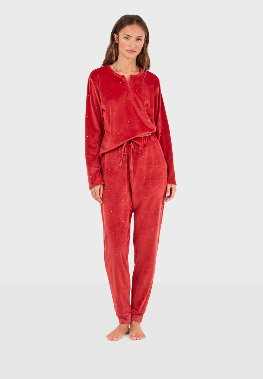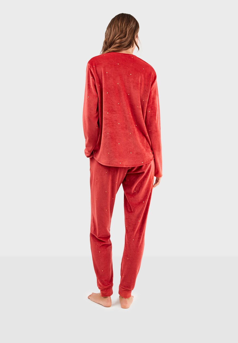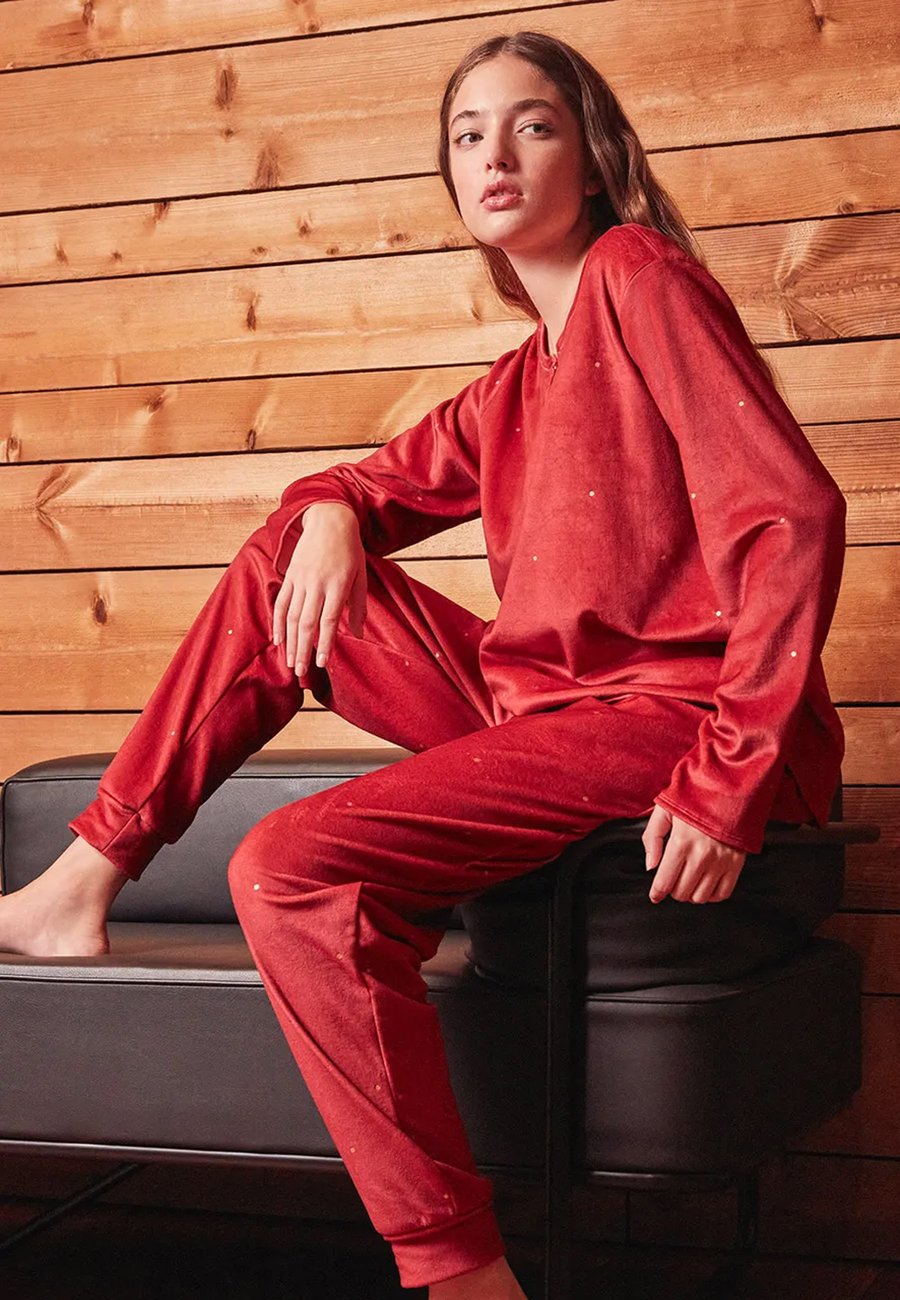 Стильный и удобный пижамный комплект, состоящий из толстовки с длинными рукавами и V-образным вырезом, а также брюк на резинке с двумя боковыми карманами. Свободный, практичный крой делает эту вещь незаменимой для уютных вечеров и расслабляющих моментов дома. Посадка: НормальнаяМатериал и уход