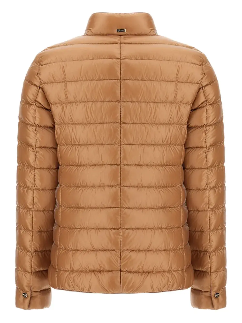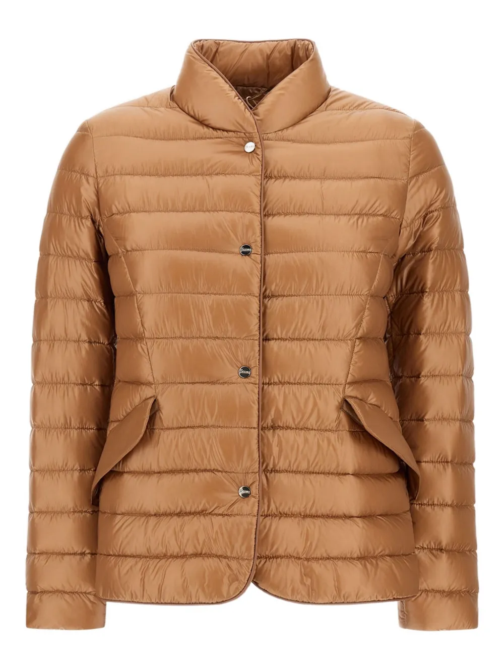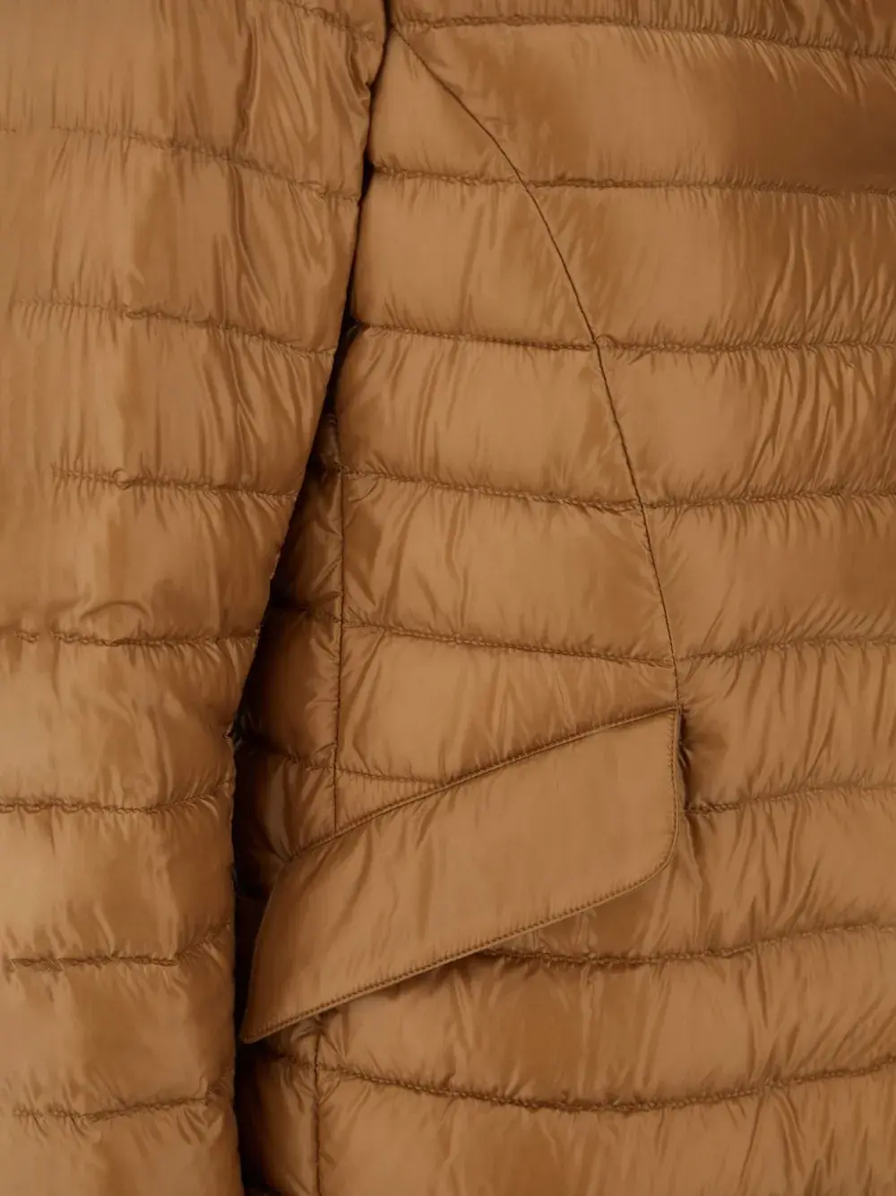 Коричневый стеганый дизайн, застёжка на пуговицы, высокий воротник, приталенный силуэт, прорезные карманы