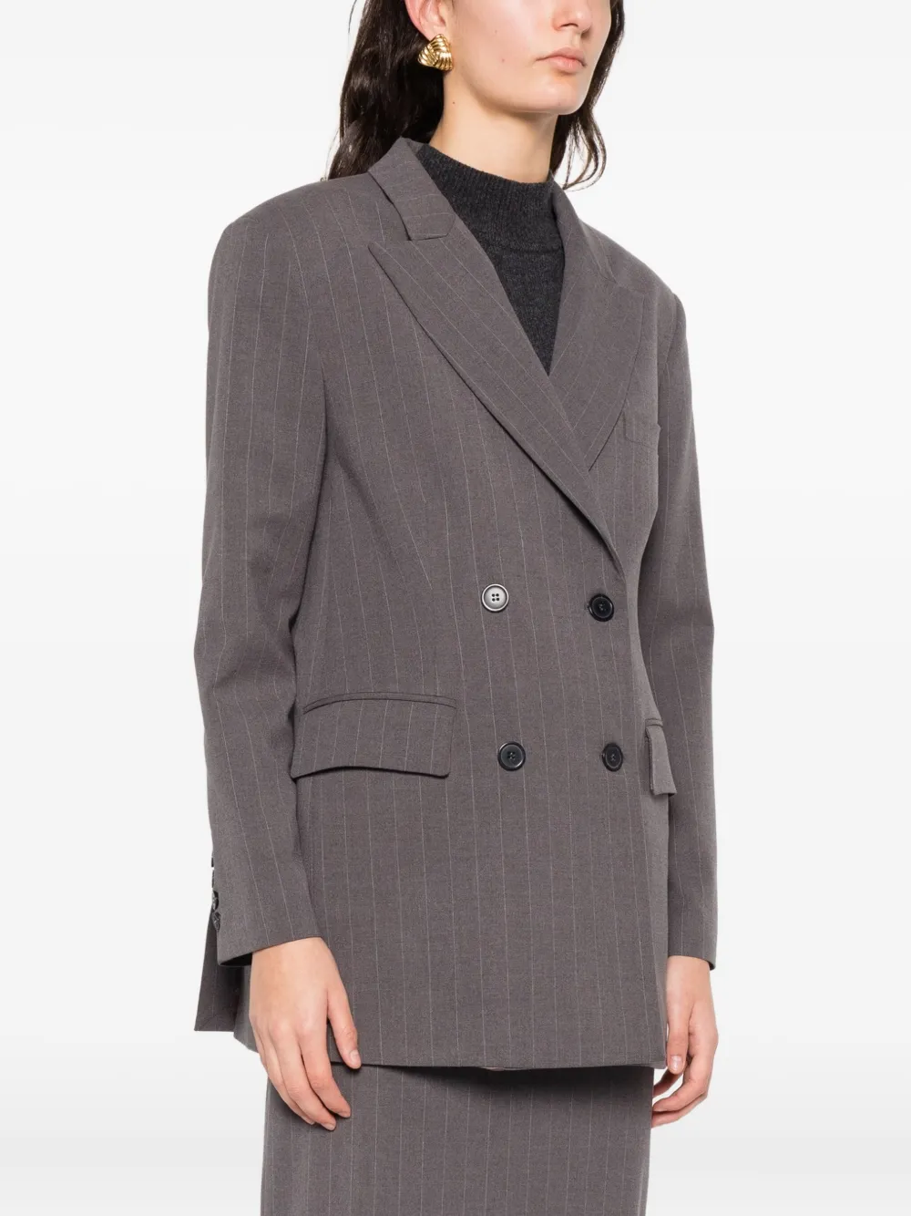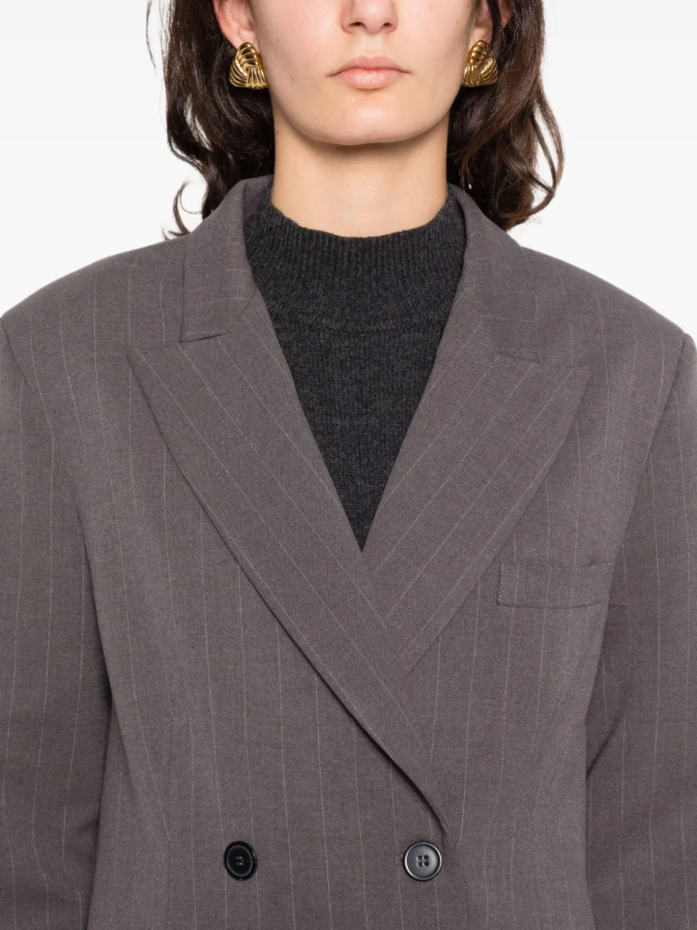 Двубортный блейзер в тонкую полоску The Nina Studio, серый