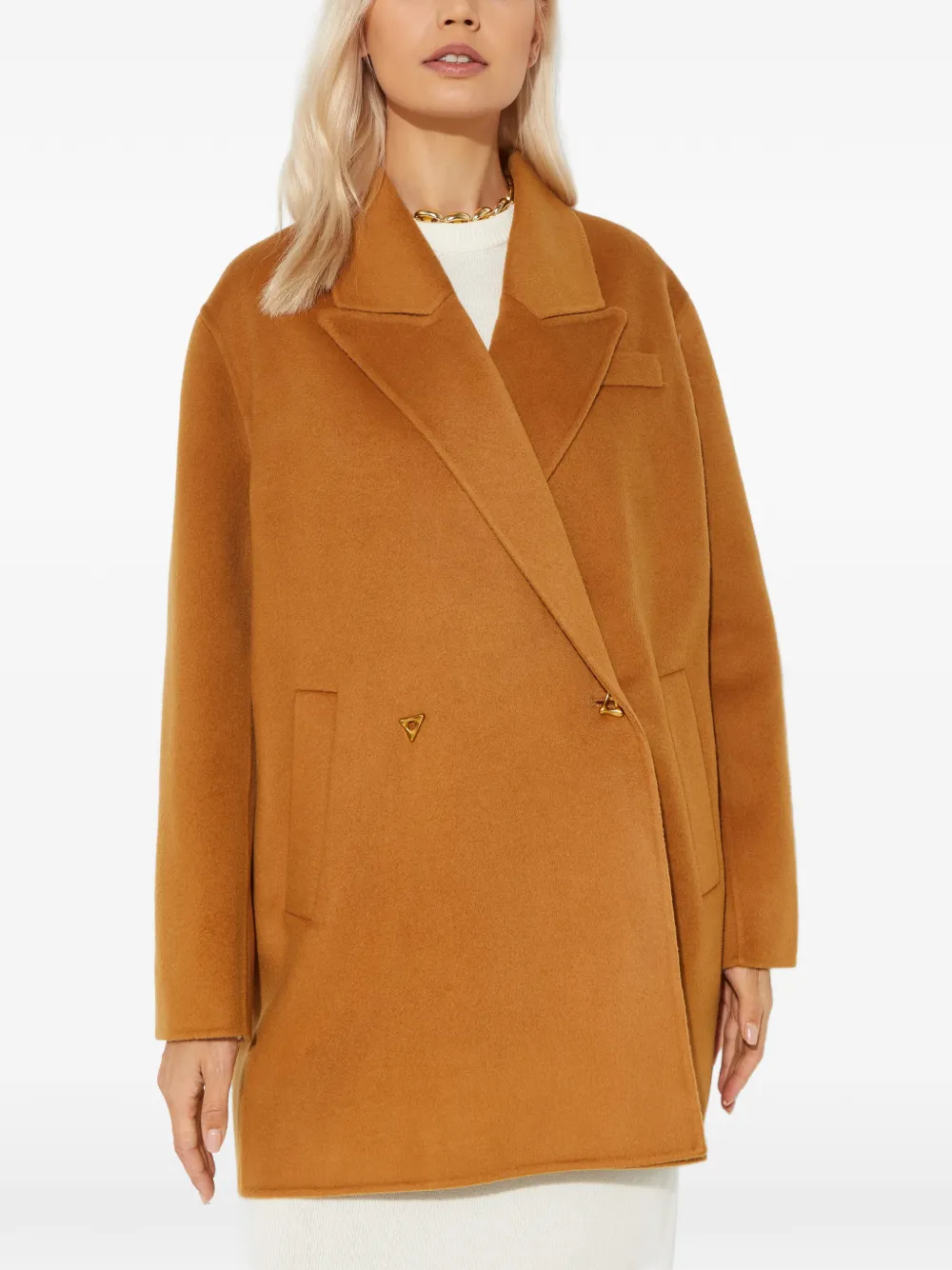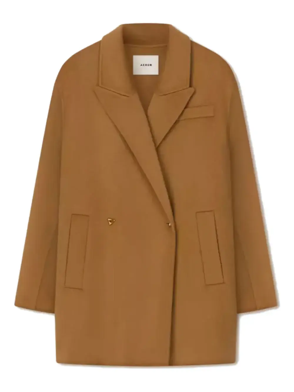 Коричневый пиджак на пуговицах с заострёнными лацканами, боковыми карманами, из шерстяной смеси, с подвеской-логотипом