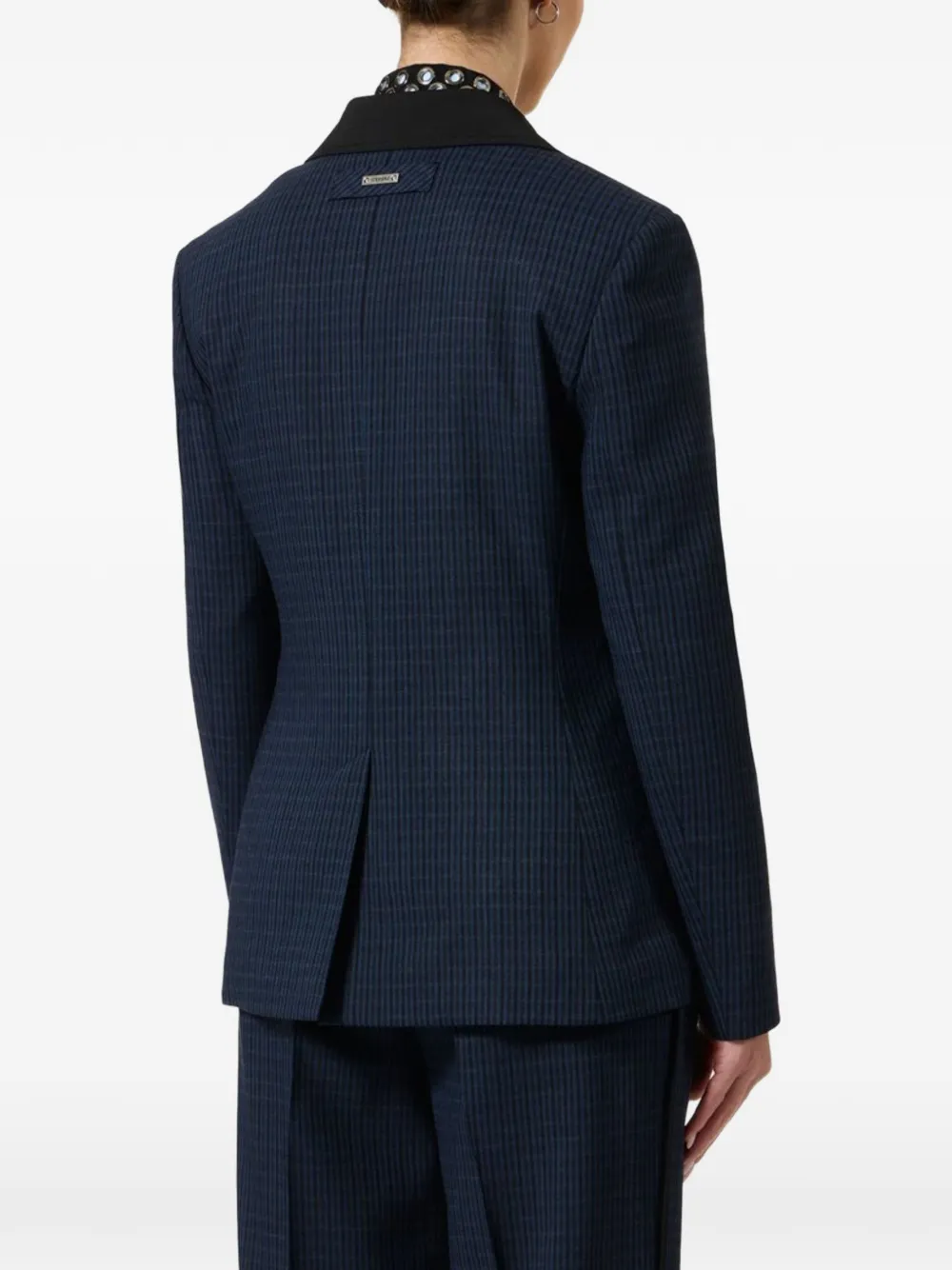 Синий в полоску, с клапанами на карманах, на пуговицах, с длинными рукавами