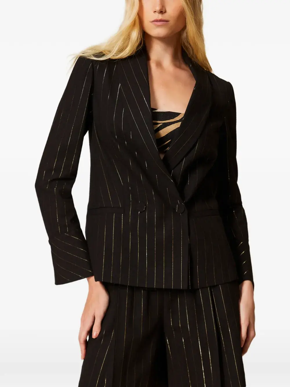 Блейзер в тонкую полоску Twinset, черный